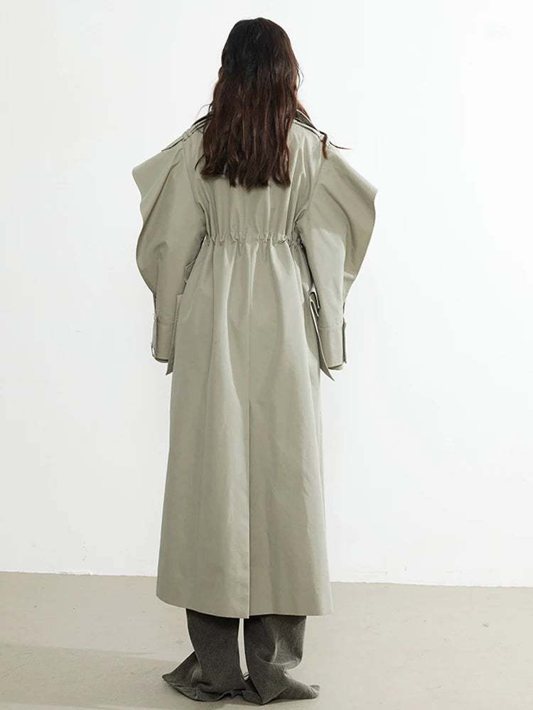 Eleganter, langer, zweireihiger Mantel mit Kordelzug in der Taille in Übergröße, luxuriöser Designer-Mantel