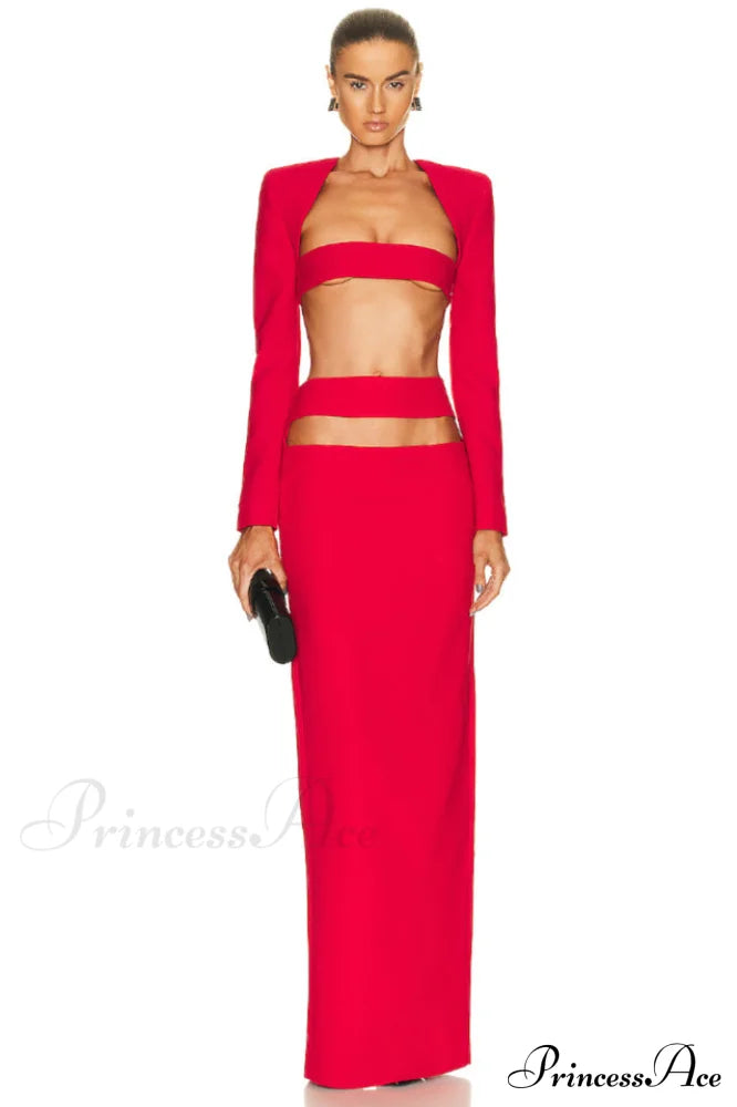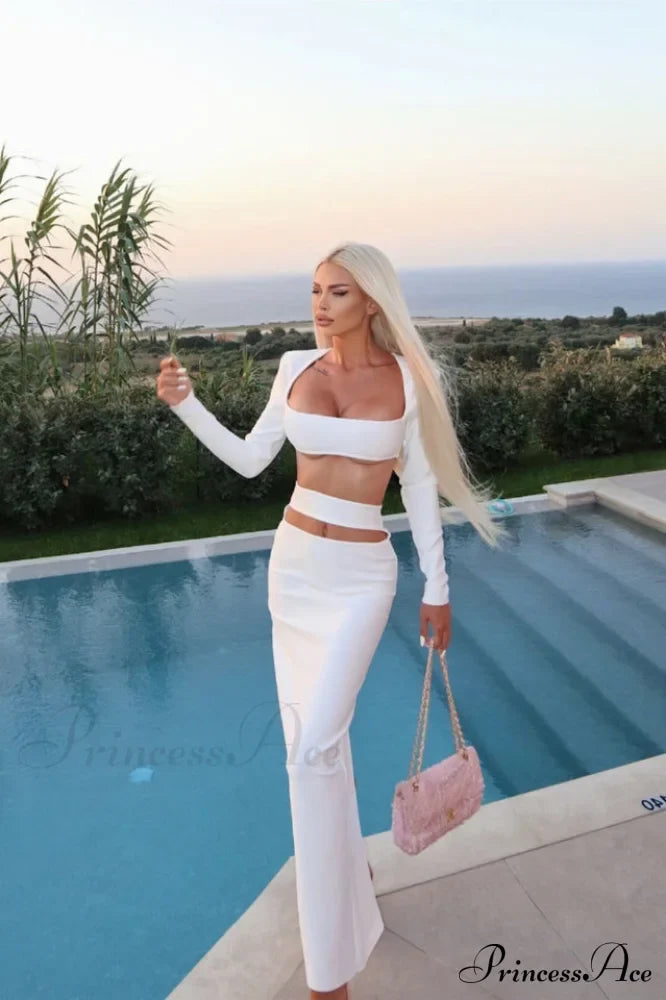 Ein sexy Cutout-Detail verleiht Ihnen einen verführerischen Look. Dieses Amara Cutout Bandage Set hält die perfekte Balance zwischen raffiniert und verspielt. Das Set aus hochwertigem Strick besticht durch sexy Cut-Outs an Brust und Taille, lange Ärmel und einen bodenlangen Saum. Kombinieren Sie es mit Riemchen-Pumps und einer passenden Clutch – ein Statement!