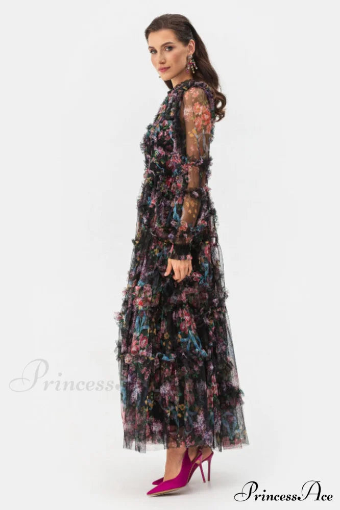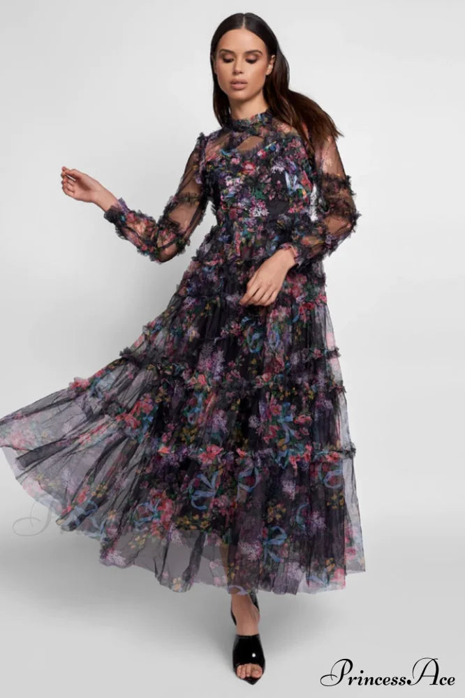 Tauchen Sie ein in ein Märchen mit unserem wunderschönen Georgina Rüschen-Maxikleid! Dieses traumhafte Tüllkleid besticht durch einen verdeckten Reißverschluss hinten, lange Bischofsärmel und verspielte Rüschenbündchen. Gefertigt aus geblümtem Tüll und verziert mit mehrlagigen Volants ist es der Inbegriff eines Fairycore-Kleides! Erhältlich in Schwarz oder Apricot, ist dieses ätherische Stufenkleid die ultimative Wahl für Frauen, die ein Boutique-Outfit suchen. Mit seiner skurrilen Silhouette und märchenhaften Ausstrahlung ist dieses Rüschenkleid ein bezauberndes Meisterwerk für Hochzeiten und Abschlussbälle.