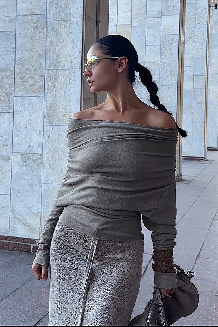 Schicke Vintage-Bluse mit Carmen-Ausschnitt und schulterfreiem Schnitt