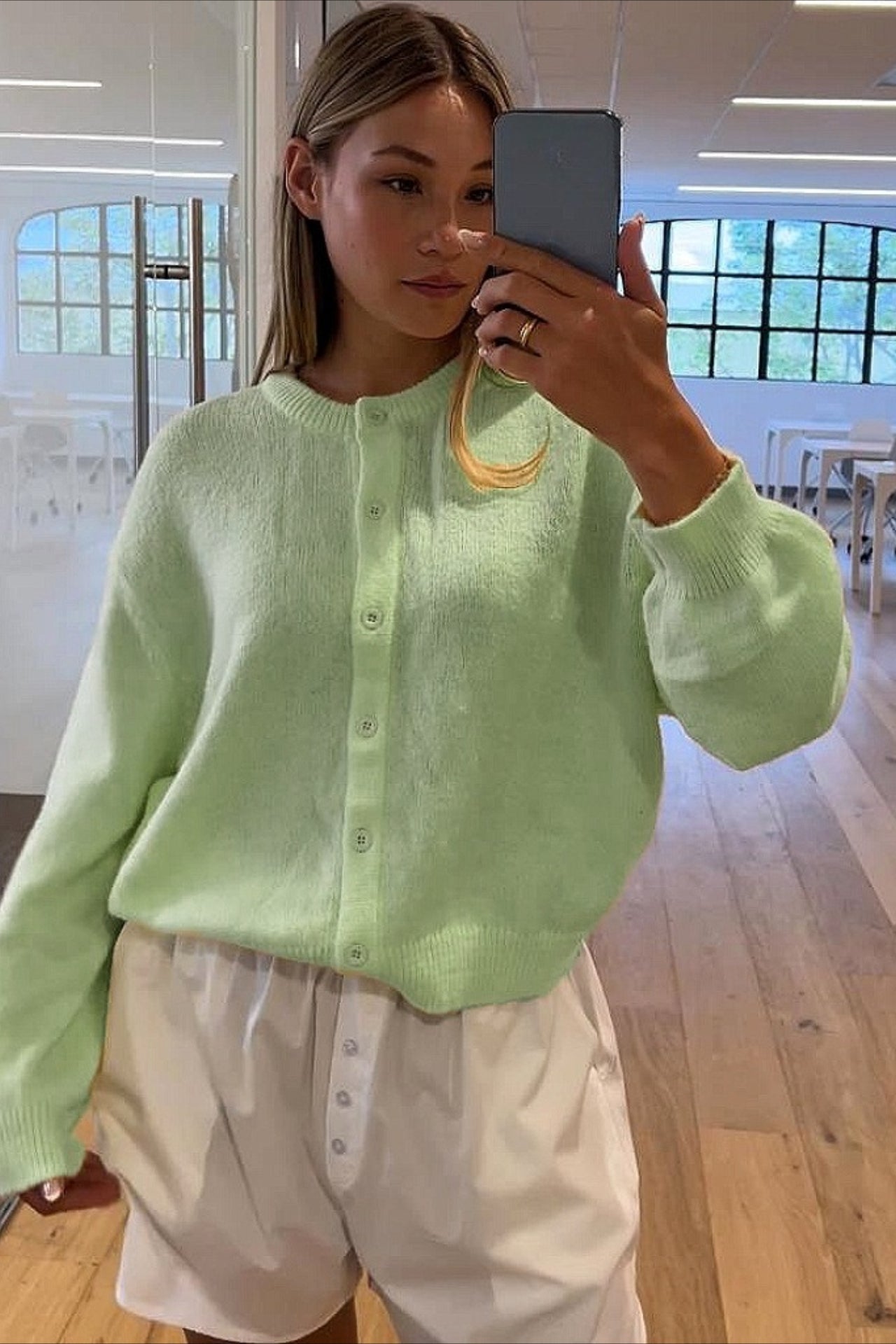 Casual Solid Buttoned Long Sleeve Knit Cardigan