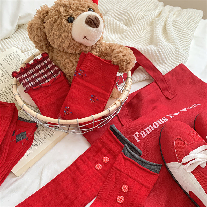Lässige, rote, gekämmte Baumwollsocken bis zur Wade