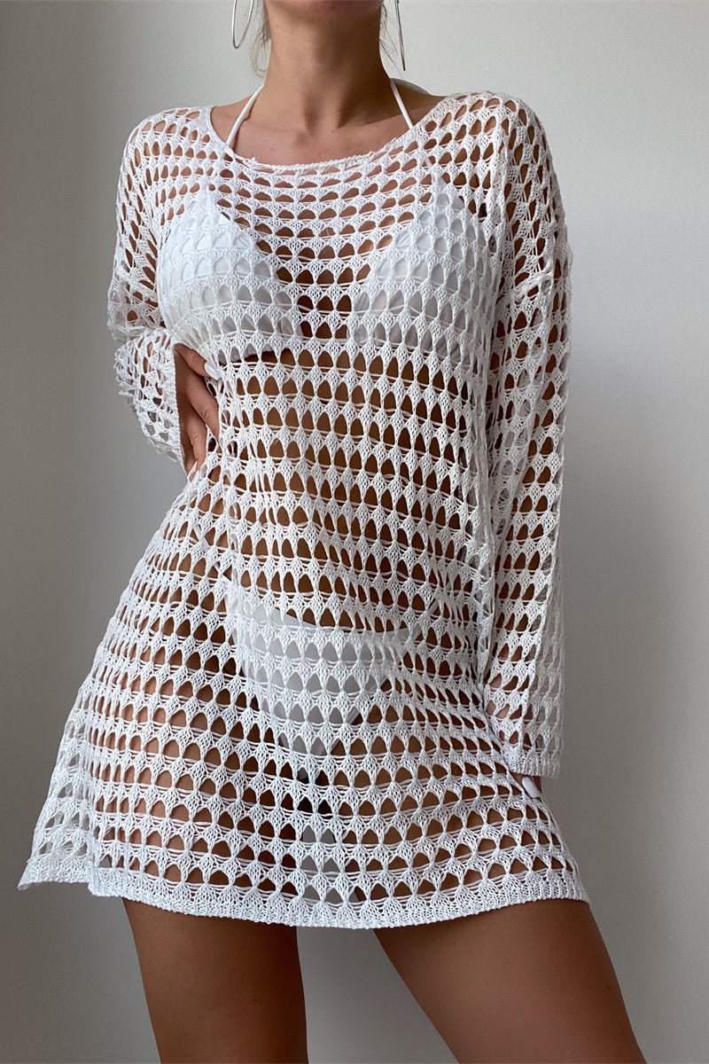 Langärmliger Bikiniüberzug aus Hohlstrick