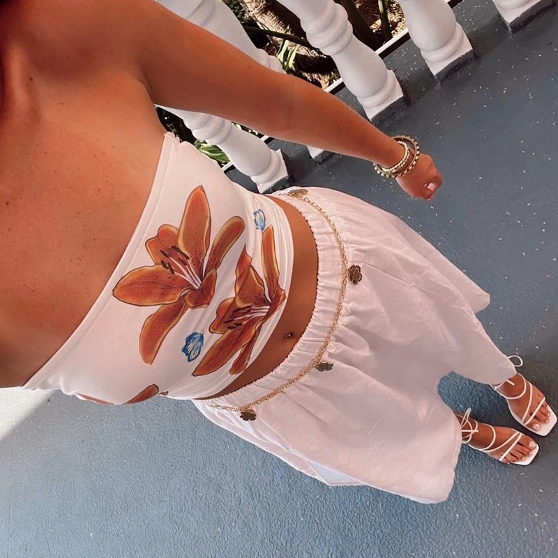 Bandeau-Crop-Top mit Blumenmuster und Wickeldesign