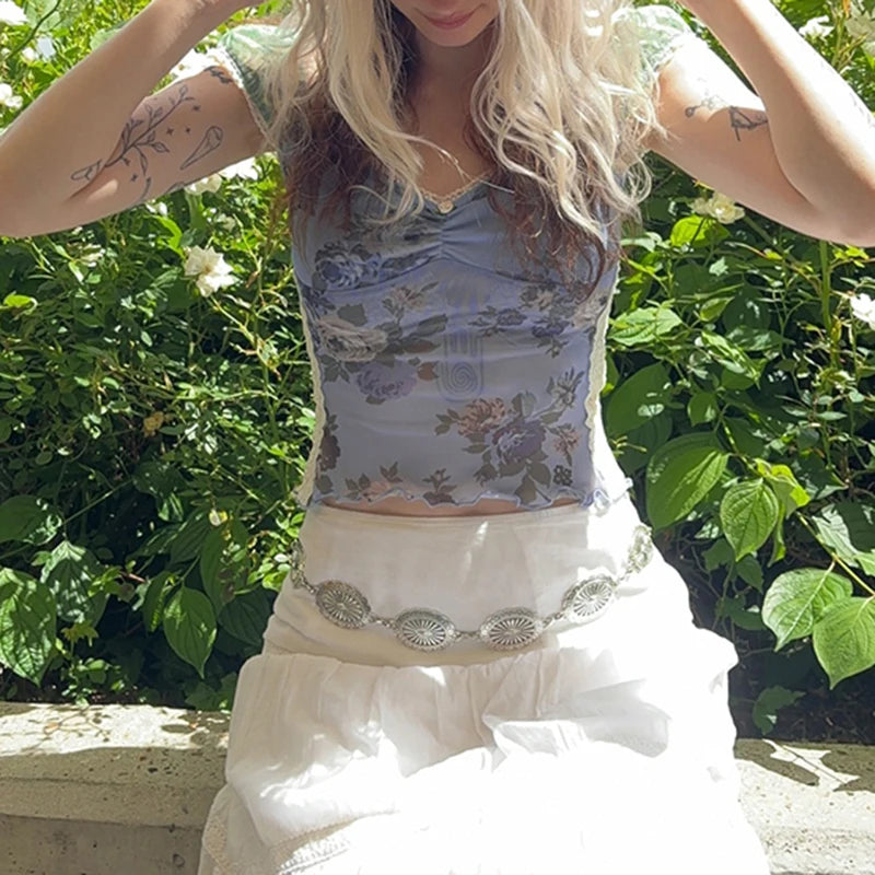 Quadratisches Crop-Top aus Netzstoff mit Blumenmuster