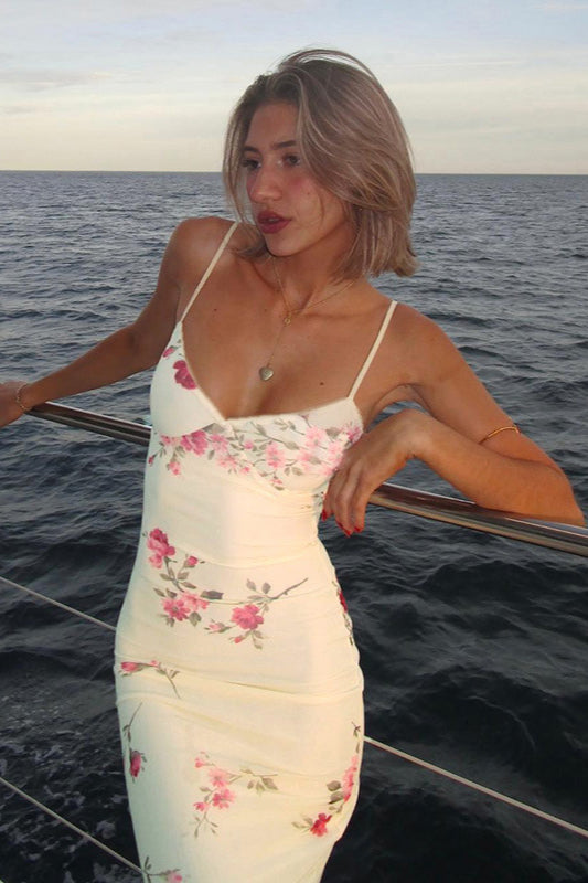 Maxikleid mit Blumenmuster und verstellbaren Trägern