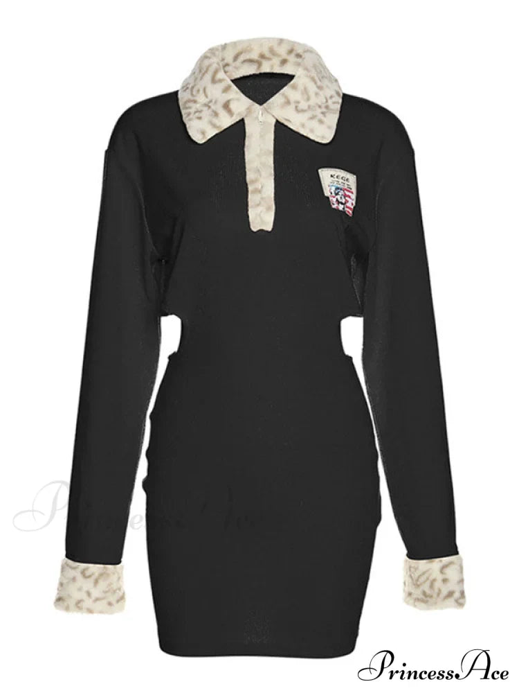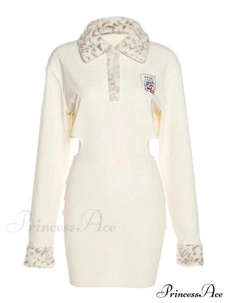 Design: Halber Reißverschluss. Leoparden-Kunstpelzbesatz. Seitliches Ausschnittdetail