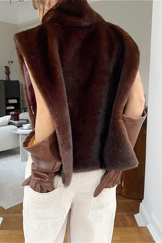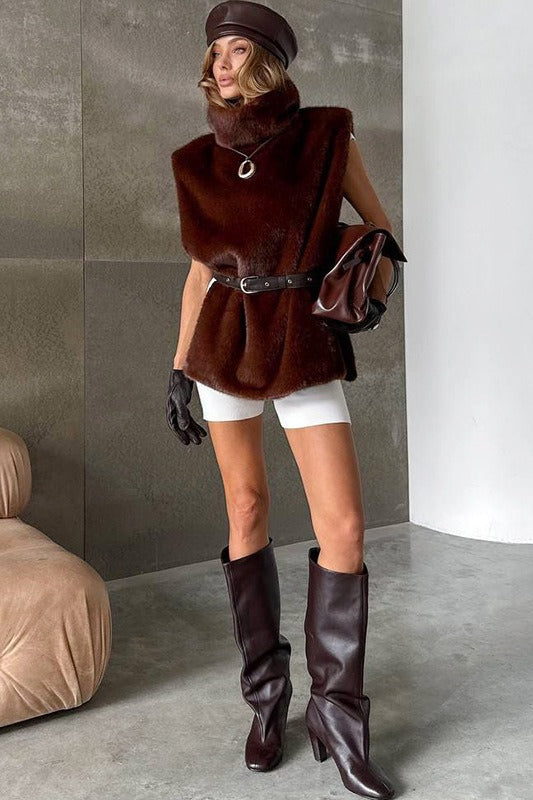Solid Turtleneck Fuzzy Sleeveless Vest