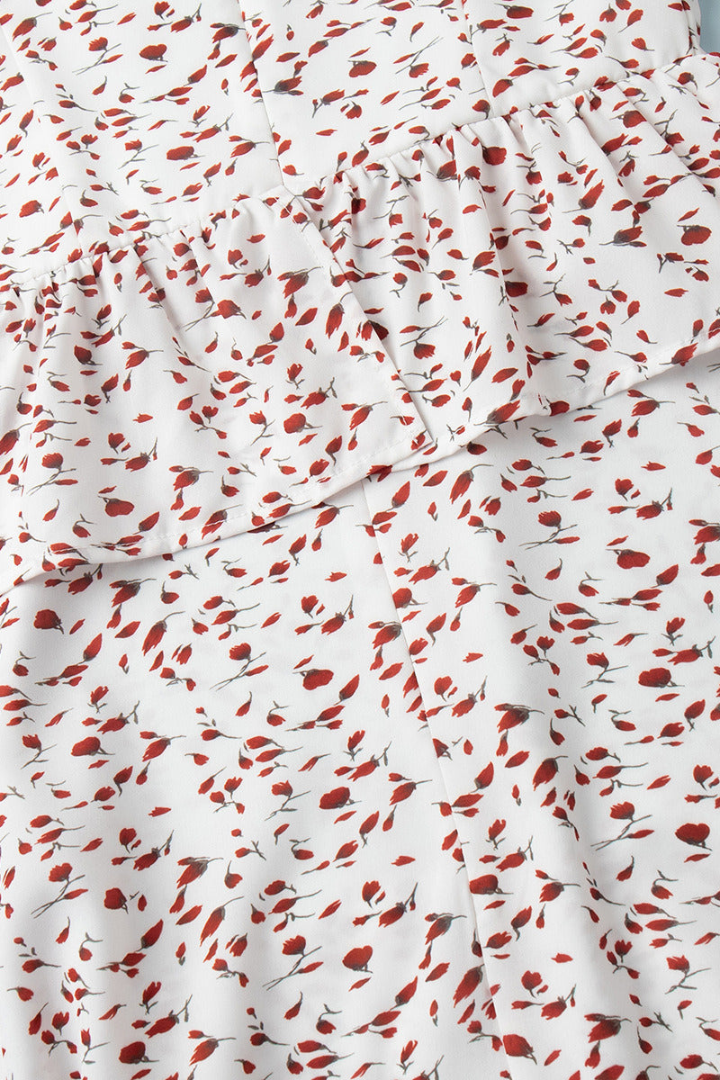Kleid mit Puffärmeln, taillierter Passform und Blumenmuster
