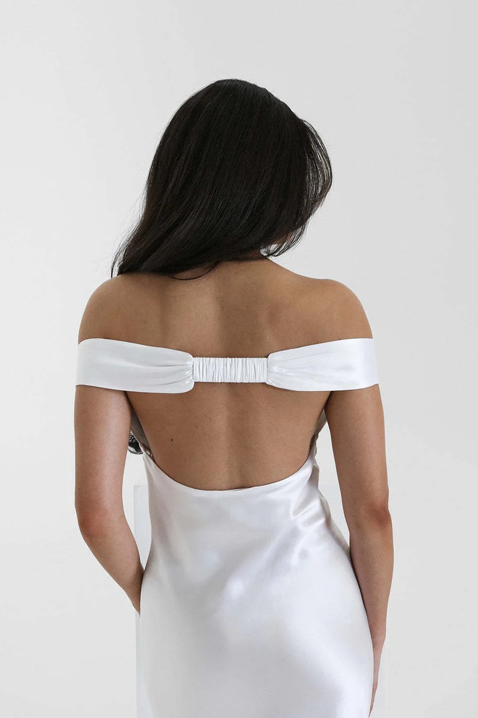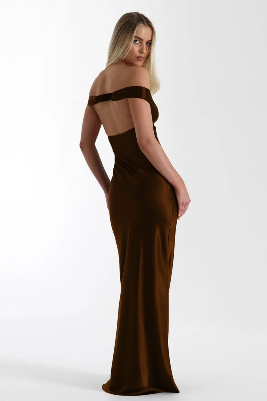 Vintage Satin Meerjungfrauen-Maxikleid mit schulterfreiem Ausschnitt