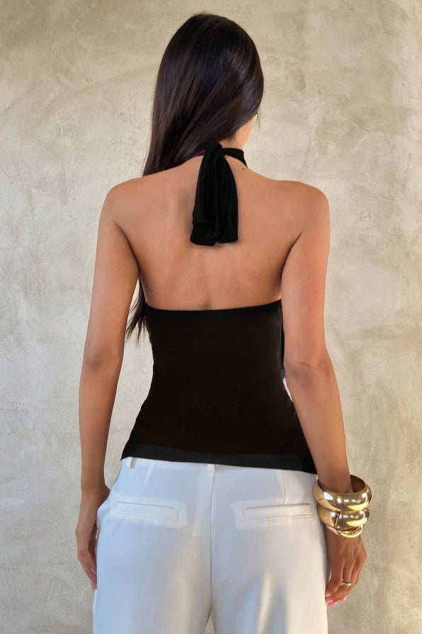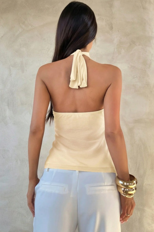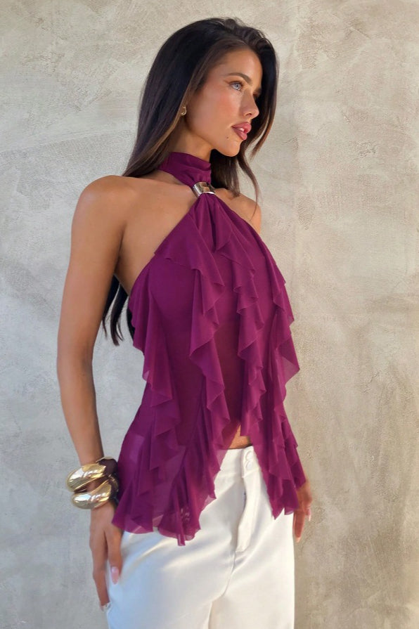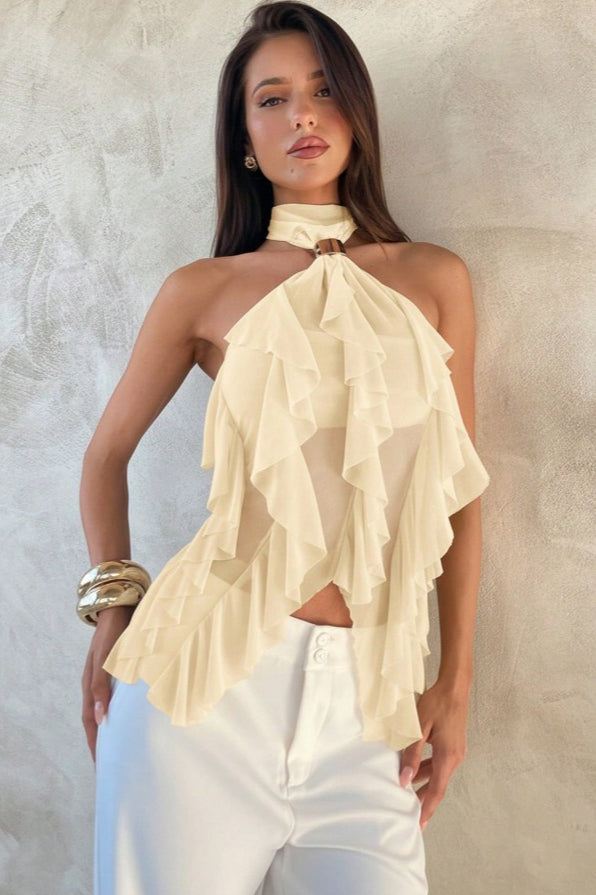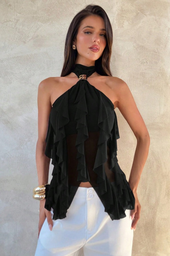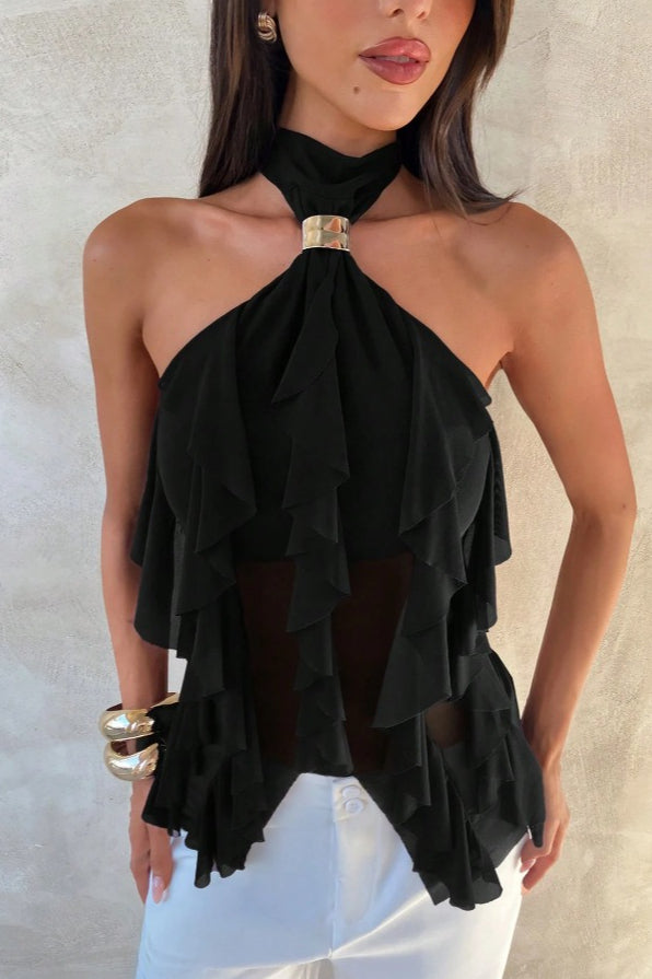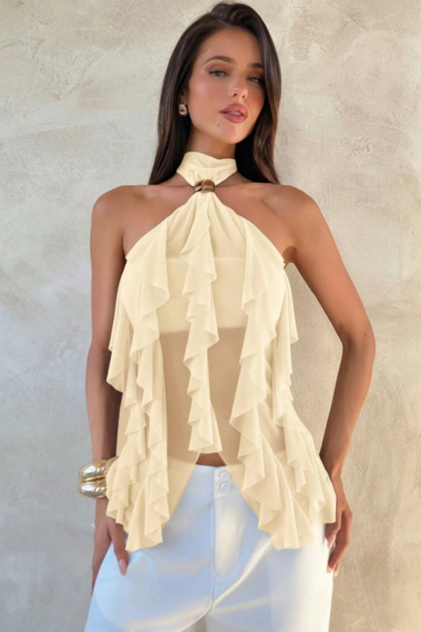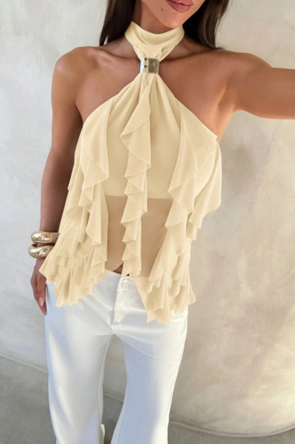 Chic Solid Ruffle Slim Halter Top