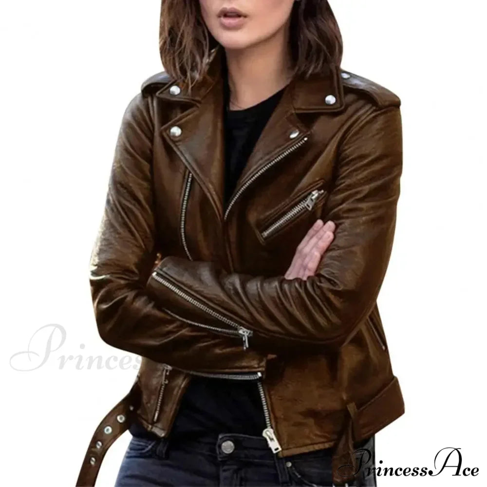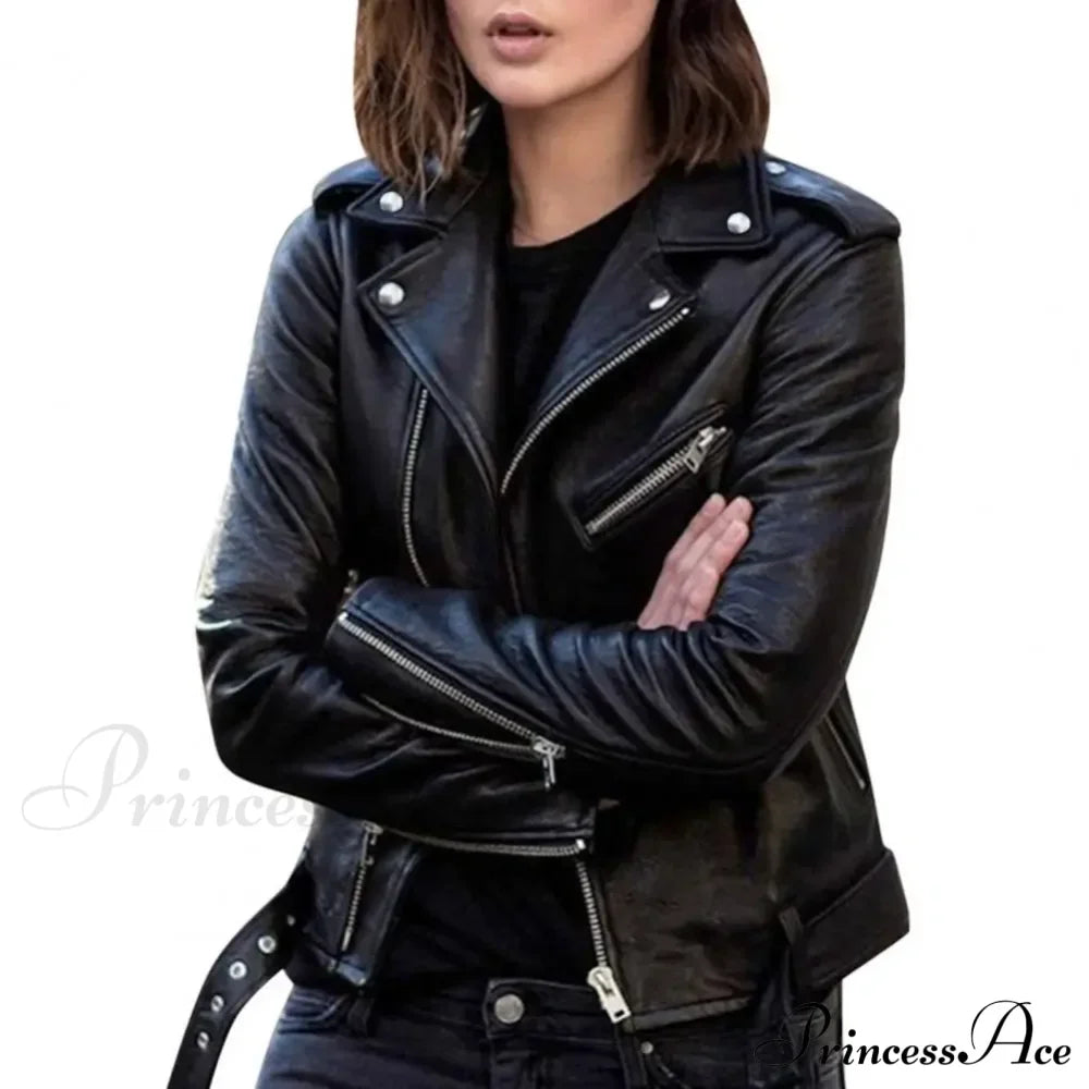 Herbstliche kurze, solide Bikerjacke aus dünnem, coolem Kunstleder