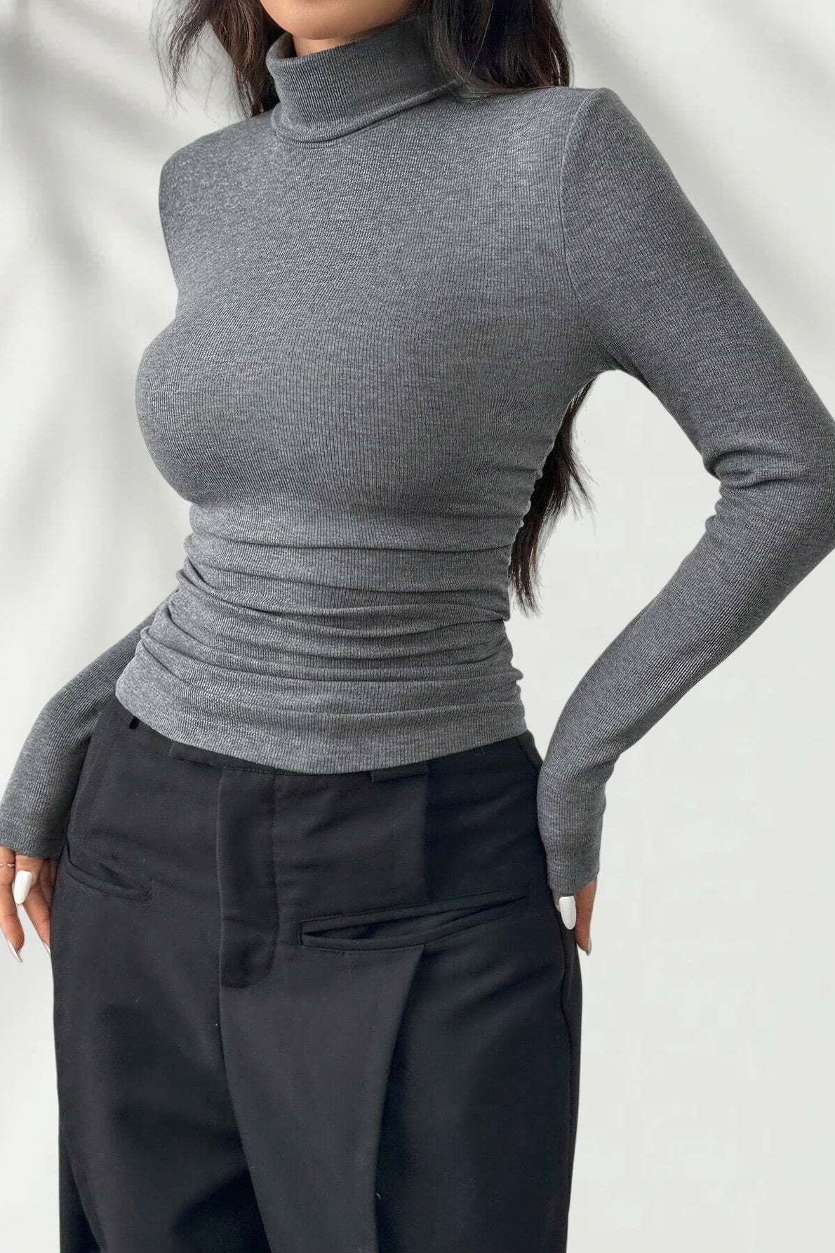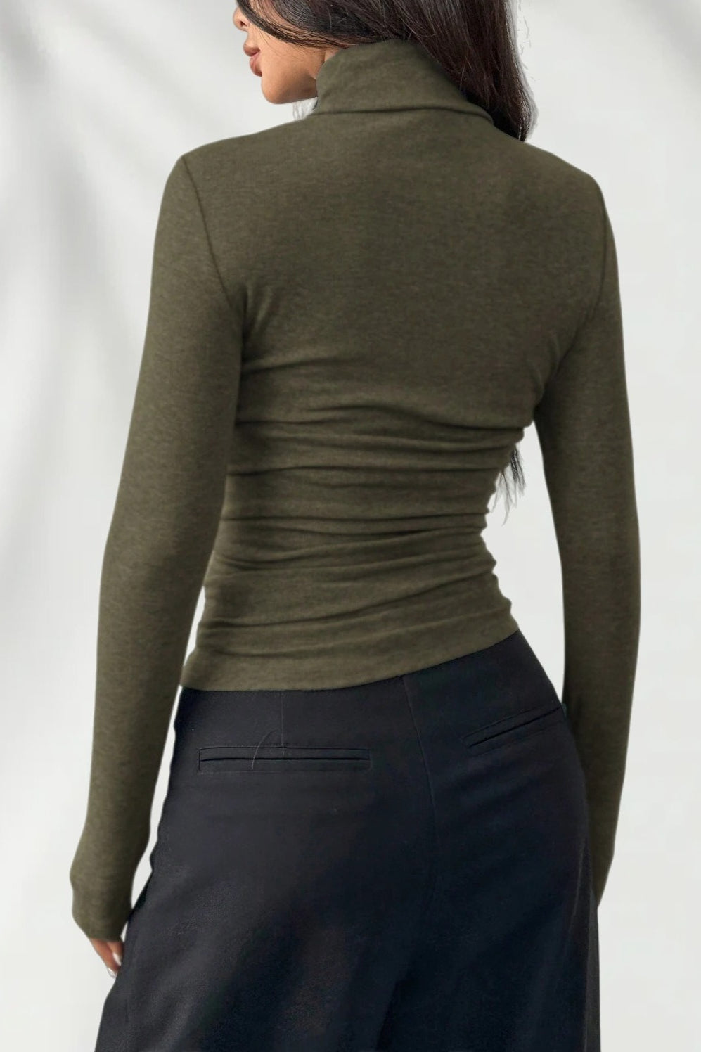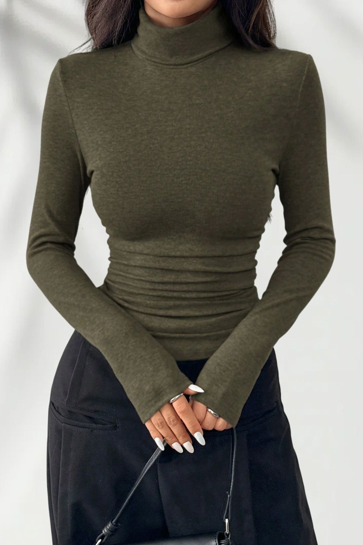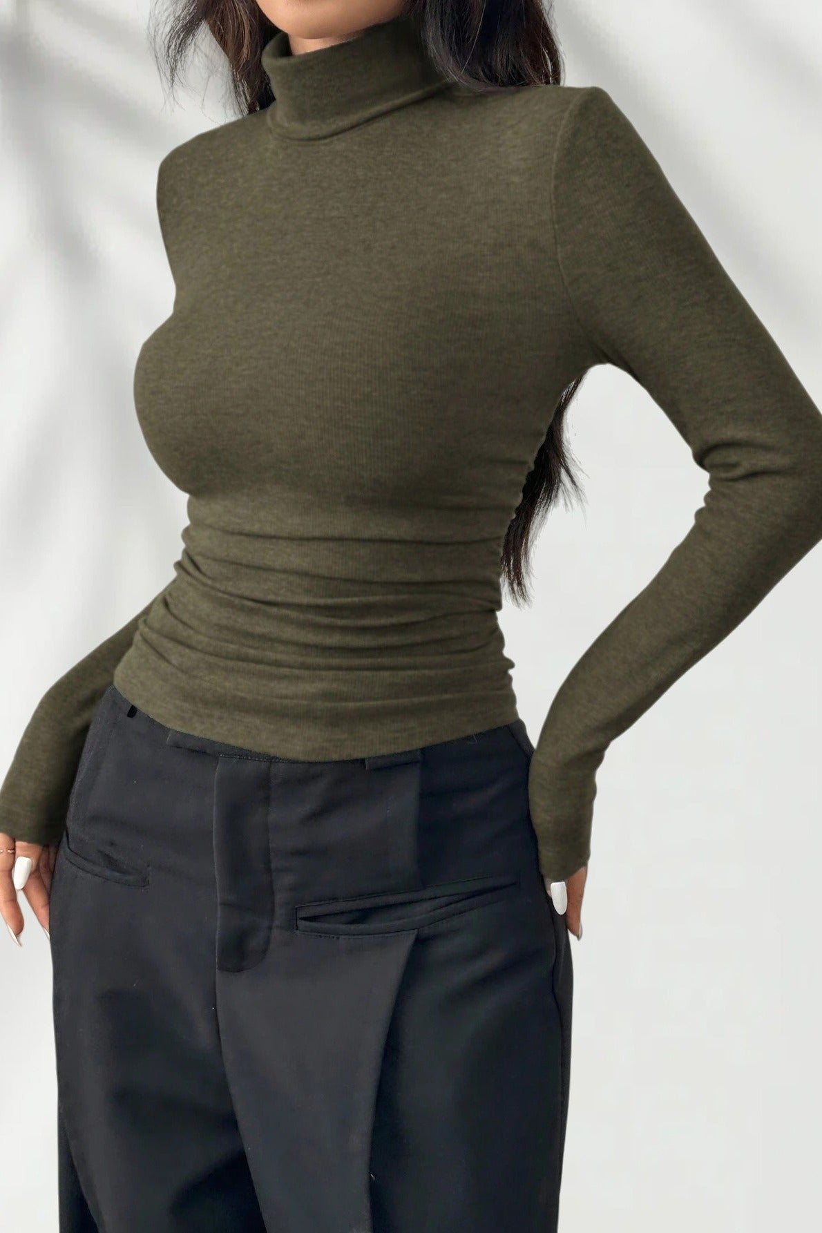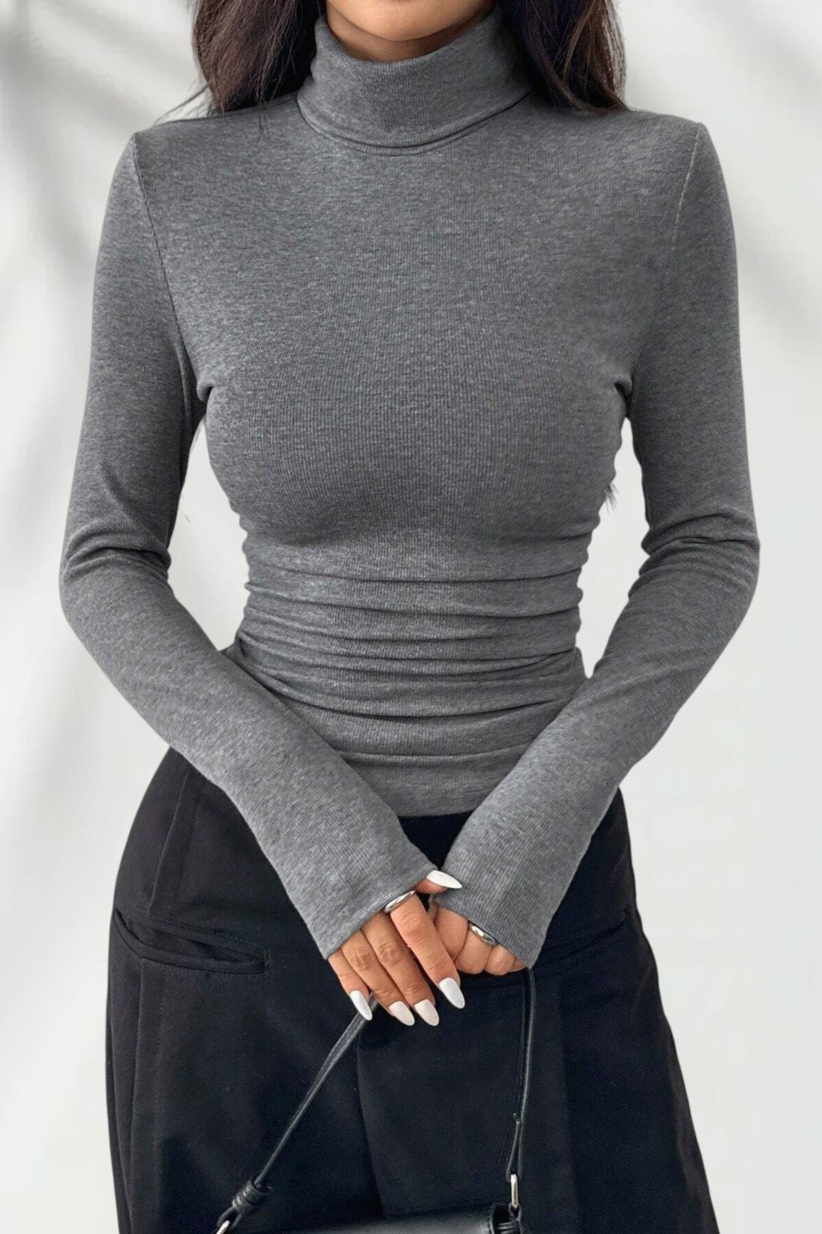 Elegantes, tailliertes Strickoberteil mit langen Ärmeln und Rollkragen