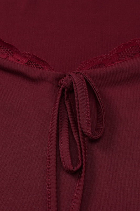 Schmal geschnittener Body mit Spitzenbesatz, Strickoberteil