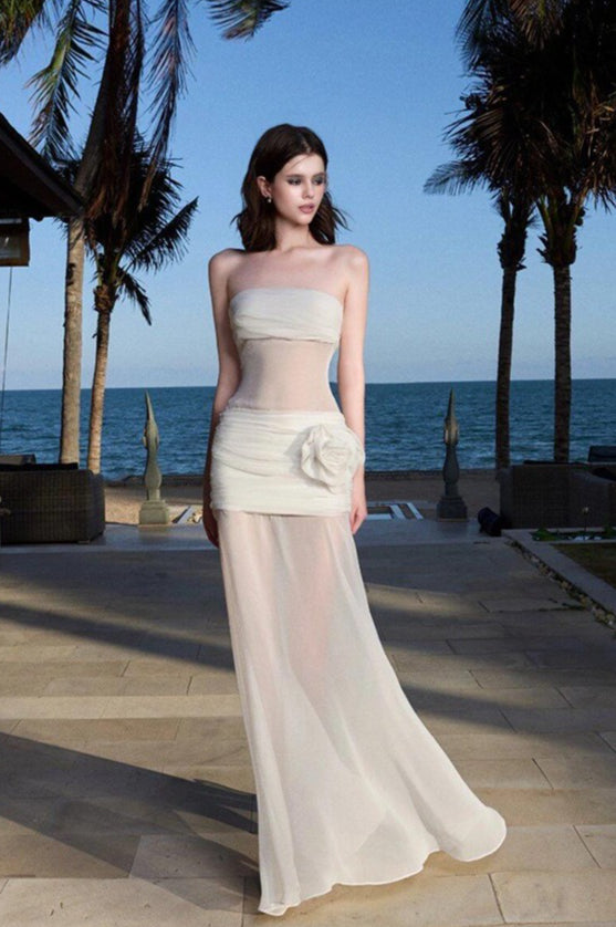Solid Sheer Mesh Bandeau Maxi Dress
