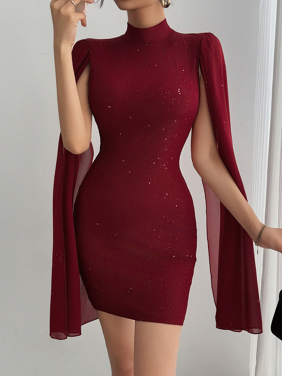 Strassbesetztes, figurbetontes Minikleid mit Rundhalsausschnitt