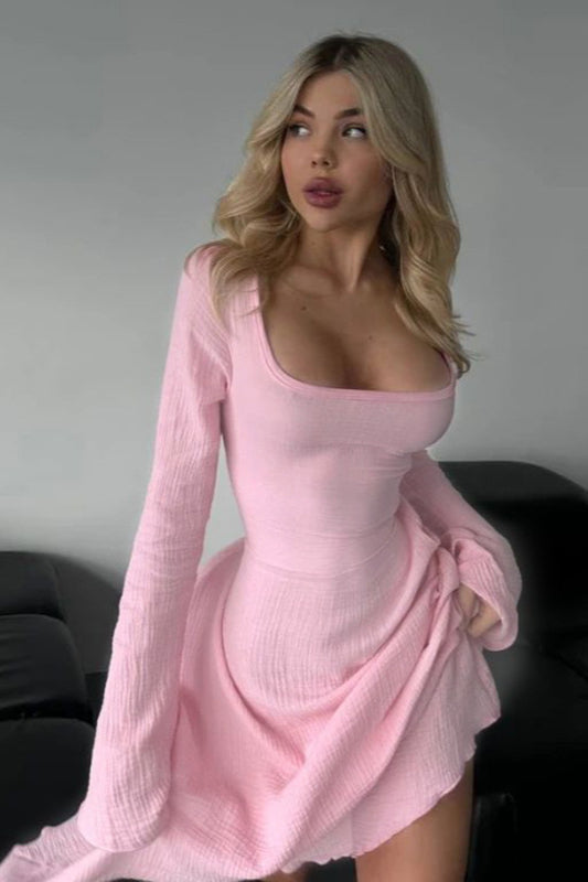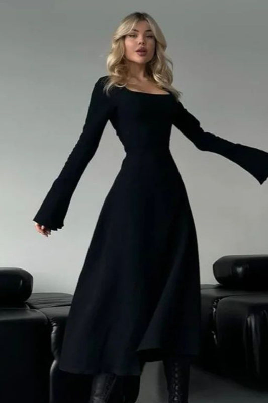 Elegantes, figurbetontes Partykleid in A-Linie mit langen Ärmeln und quadratischem Ausschnitt