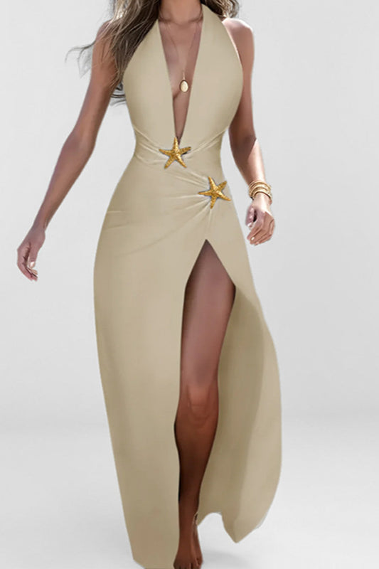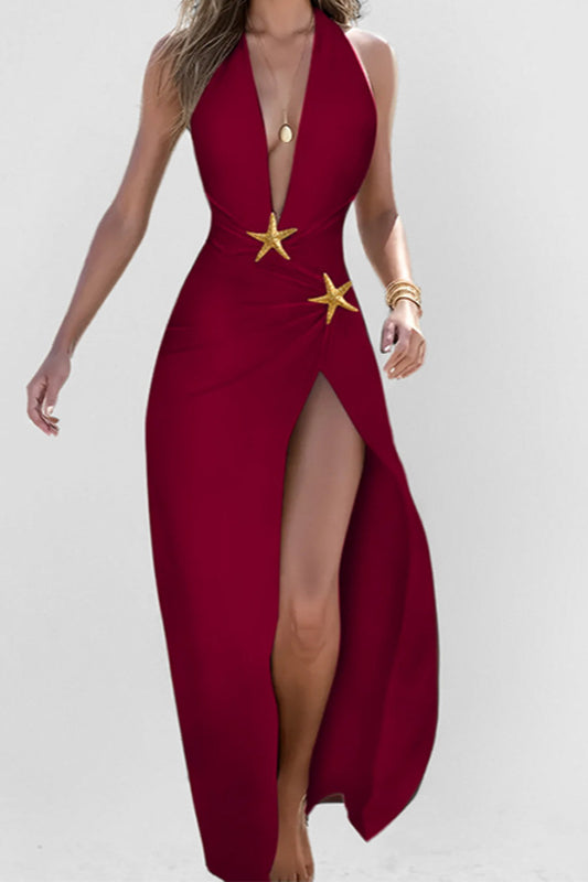 Modisches, lockeres Partykleid mit V-Ausschnitt und Schlitz