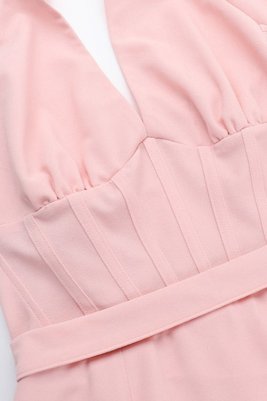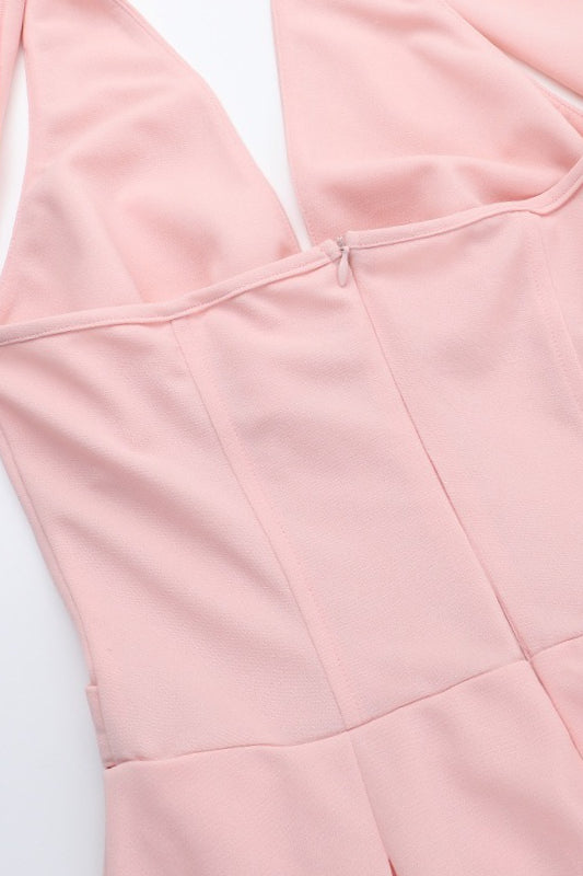Elegantes, rückenfreies Maxikleid mit tiefem V-Ausschnitt und Neckholder für Partys