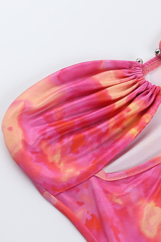 Camisole-Partykleid mit Blumenmuster und Metallring-Ausschnitt