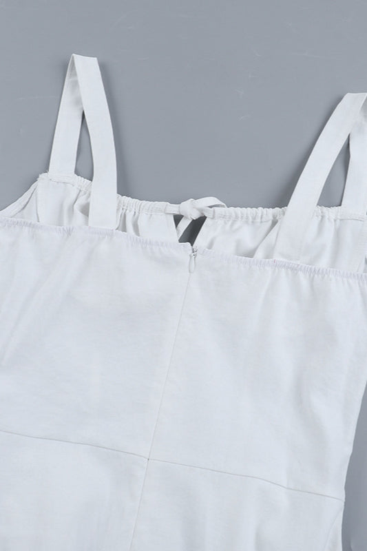 Französisches Camisole-Partykleid mit U-Ausschnitt, Kordelzug und Cut-Outs