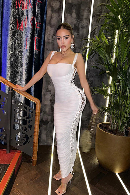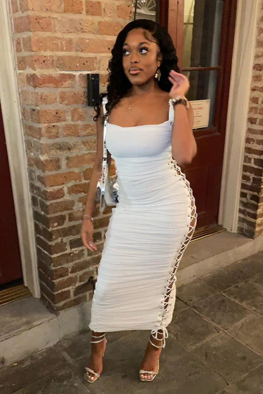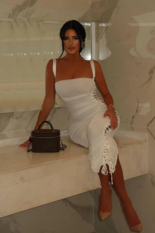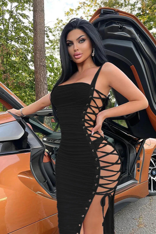 Schmal geschnittenes Partykleid mit seitlicher Schnürung und Rüschen