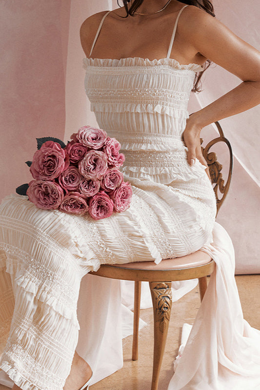 Strukturiertes Cami-Partykleid mit Rüschensaum
