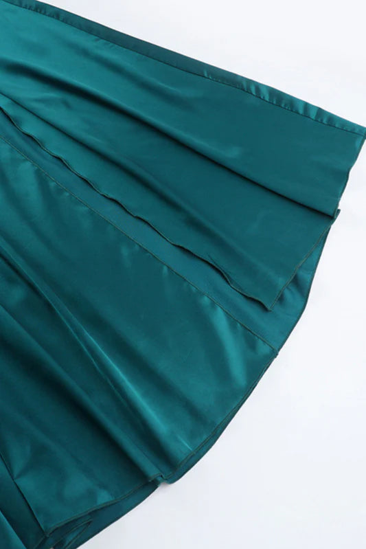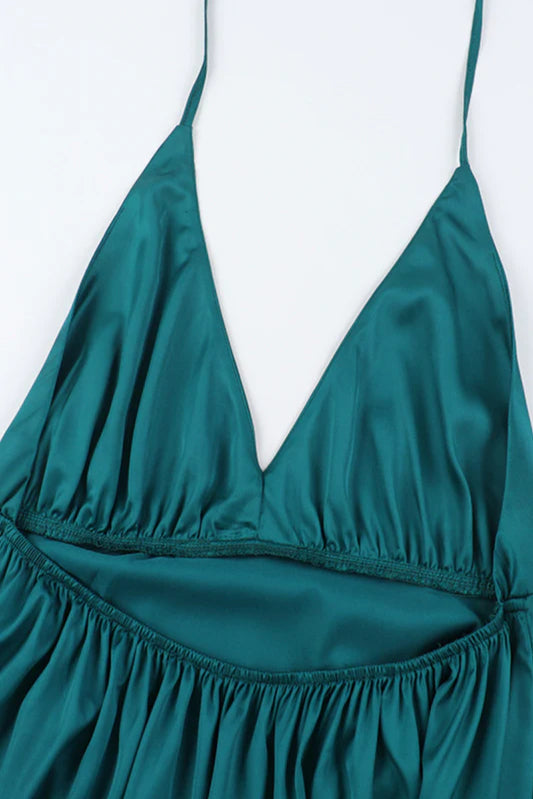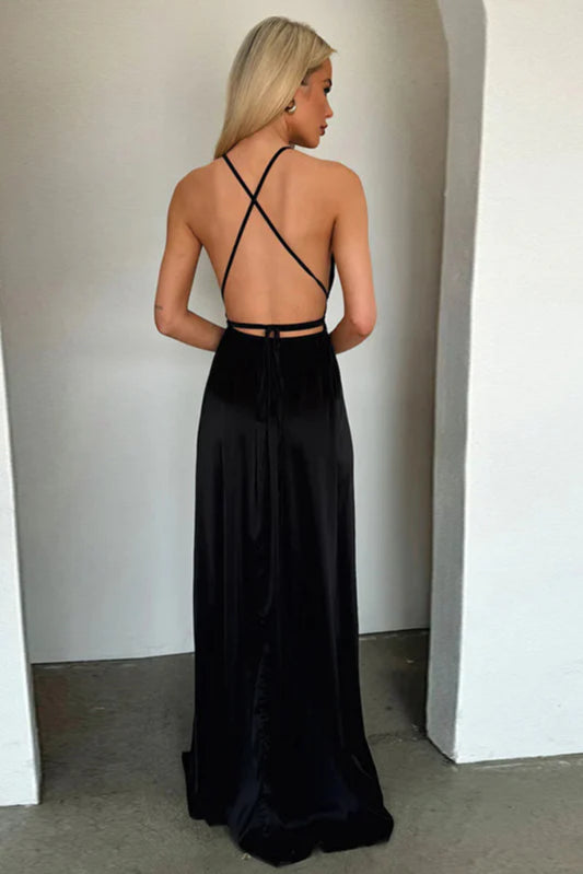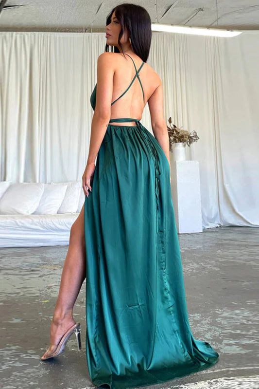 Satin V-Ausschnitt Taillenbetontes Schlitzkleid Partykleid