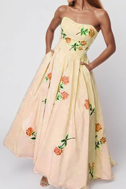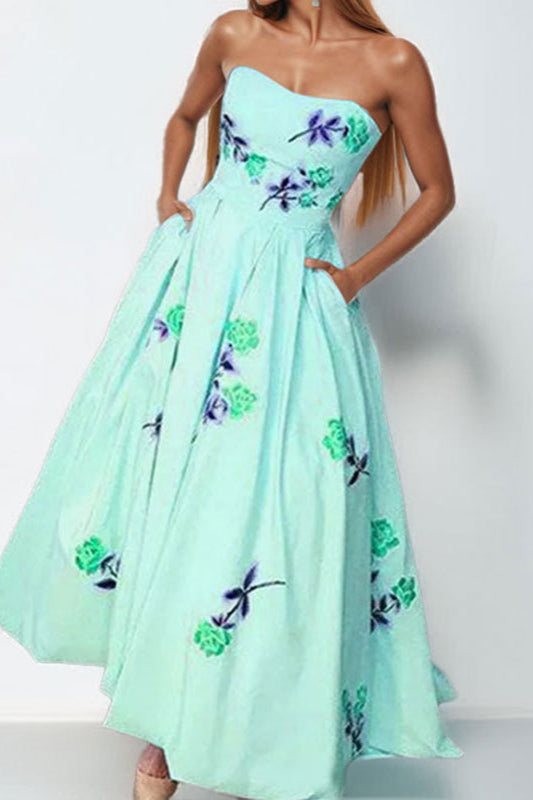 Ärmelloses trägerloses Maxi-Partykleid