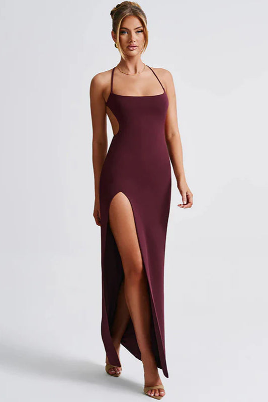 Sommer Sexy Split Kleid Slim Fit Spaghetti Strap Partykleid