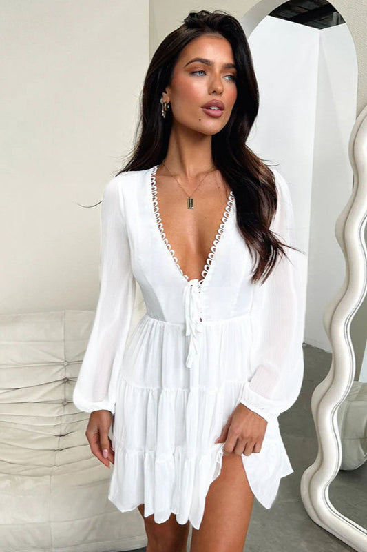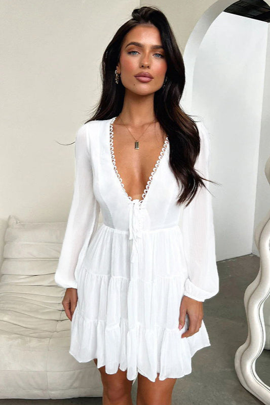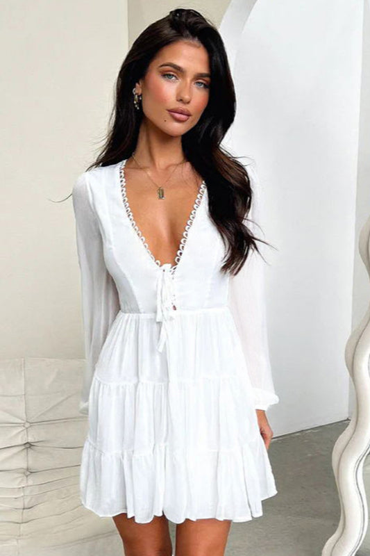 V-Neck Lace-Up Slim Fit Bodycon Party Dress