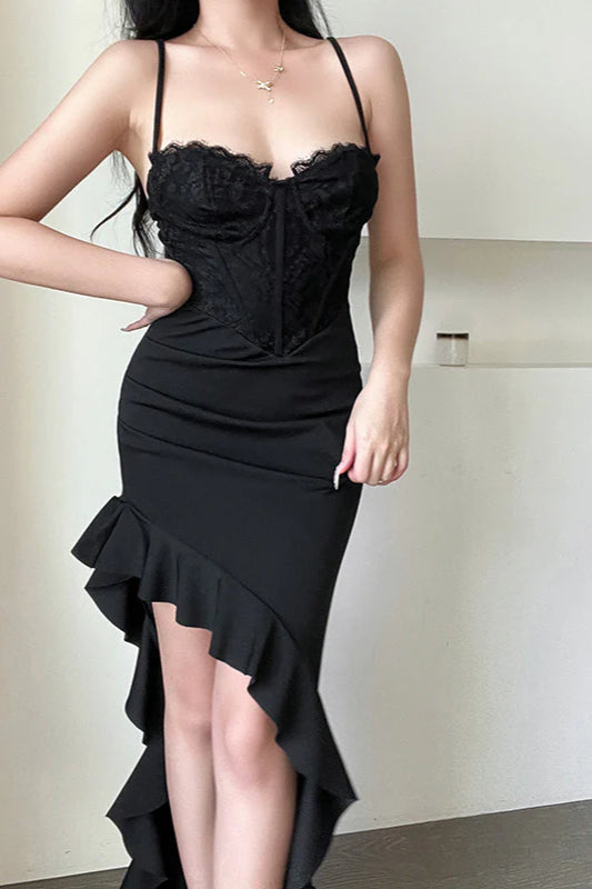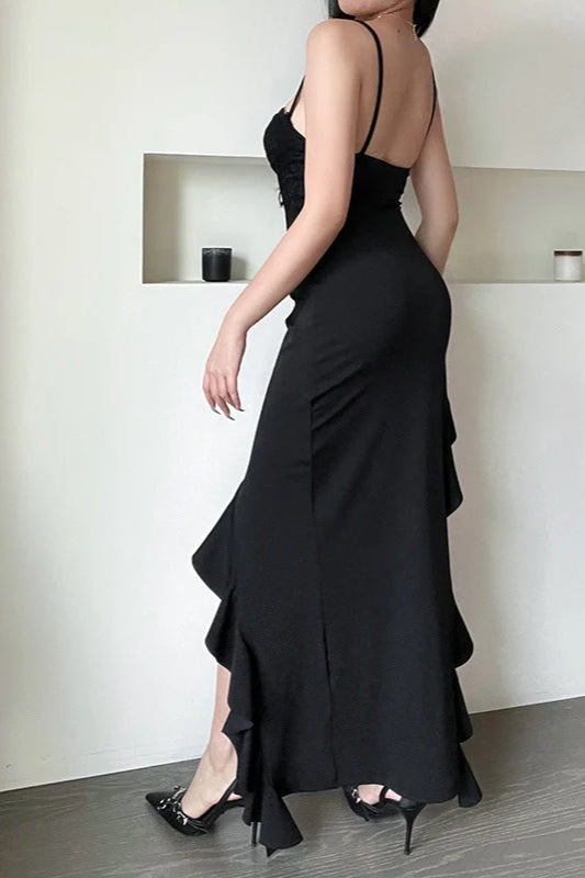 Figurbetontes Partykleid mit gewelltem Saum und Schlitz