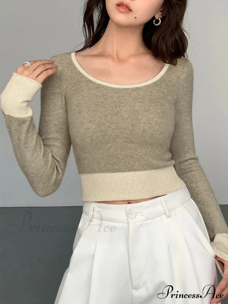 Crop-Stricktop mit kontrastierendem Saum und langen, trendigen Ärmeln