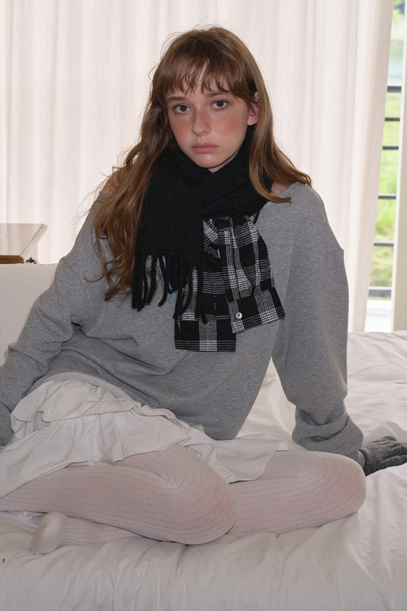Schal aus Wollmischgewebe mit Karomuster, Patchwork-Design und Fransen