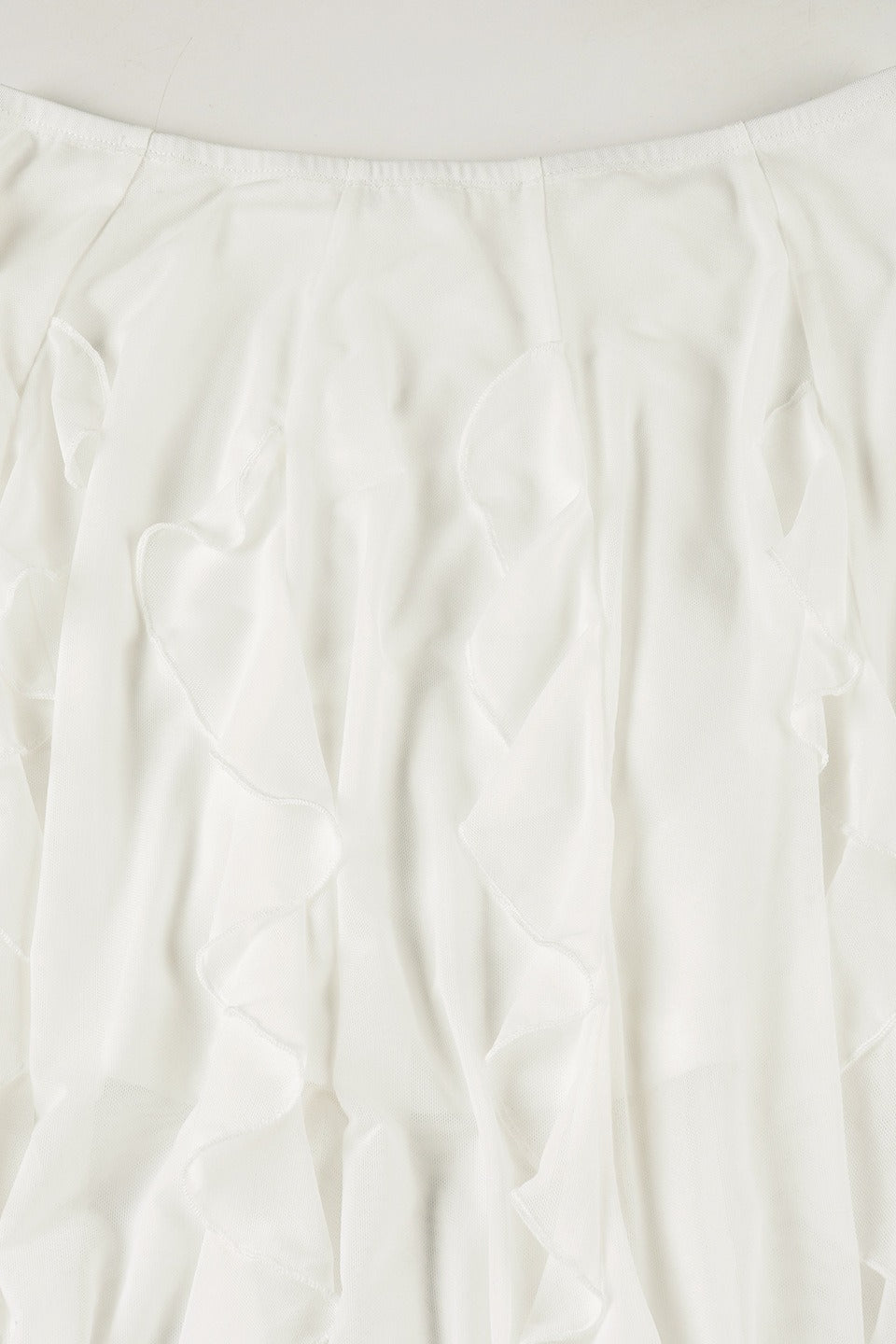 Asymmetrischer Midirock aus gerüschtem Netzstoff