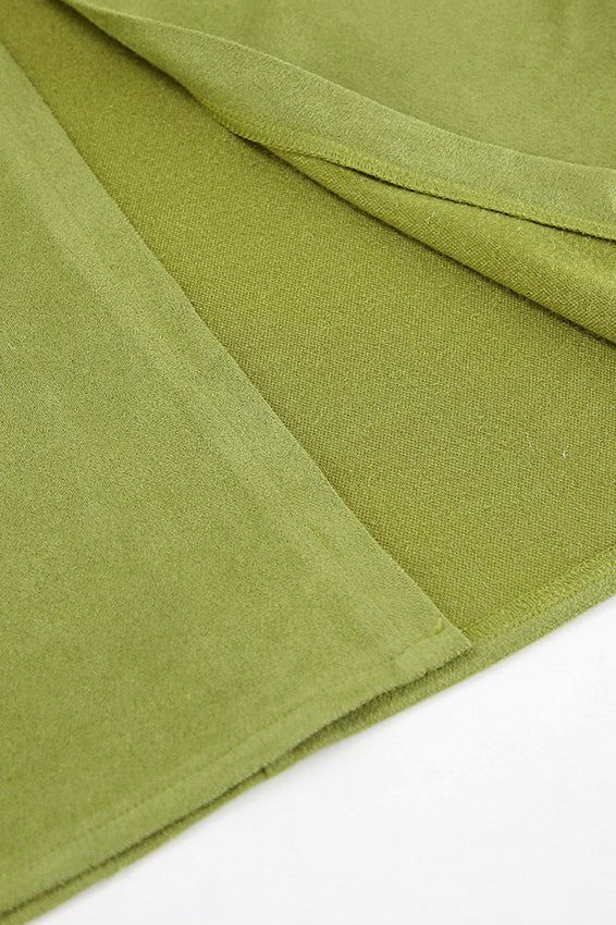 Samtgrüner Midirock mit hoher Taille und Schlitz