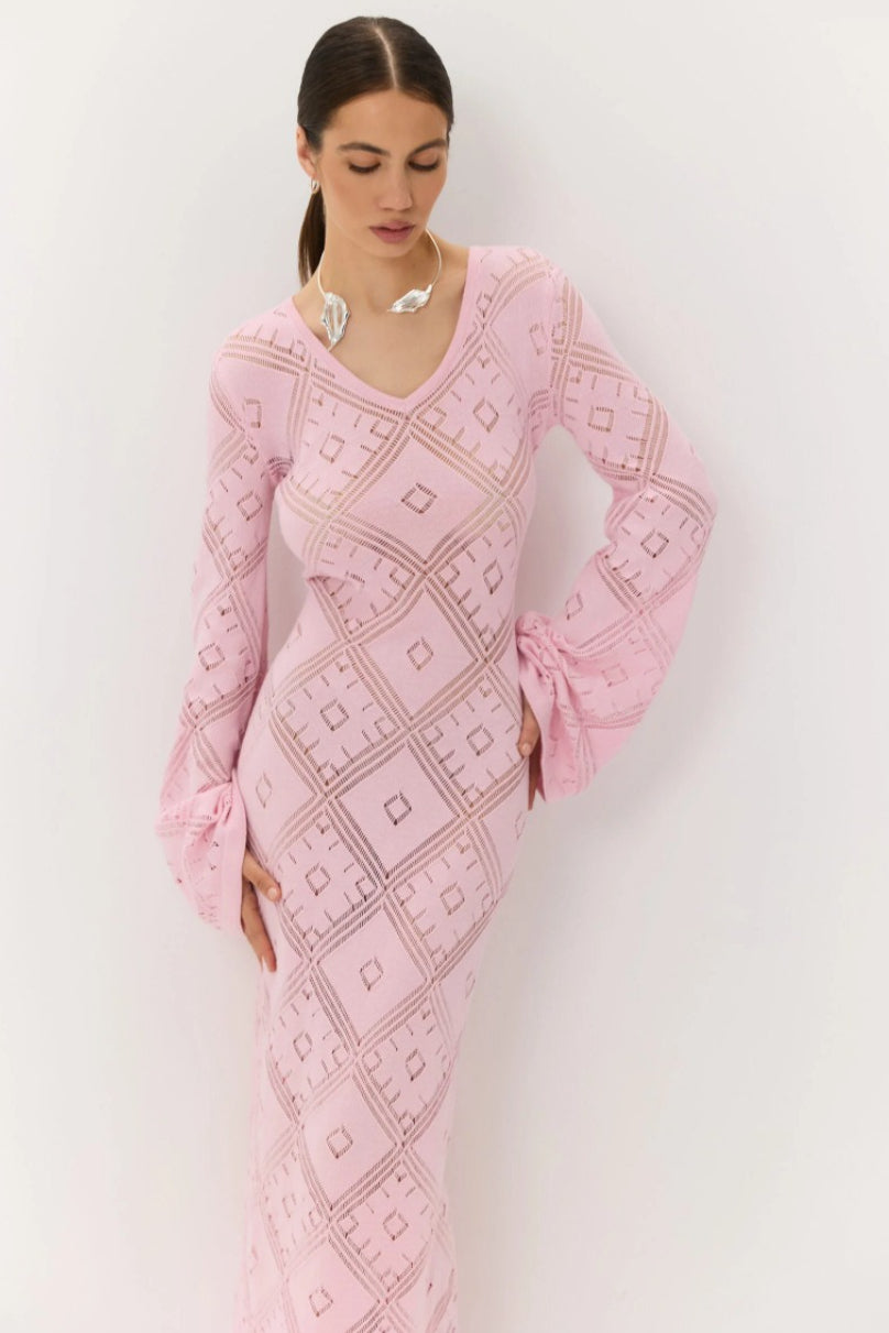 Knit Argyle Jacquard Long Sleeve Maxi Dress
