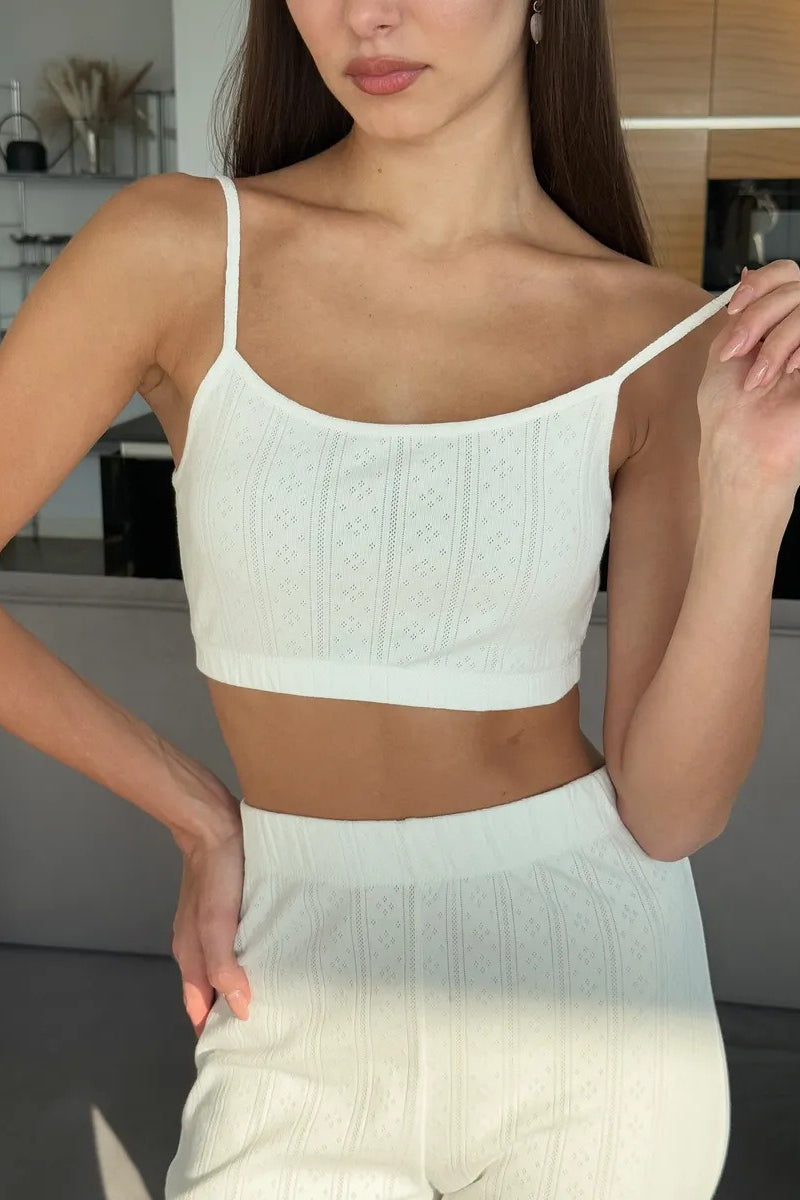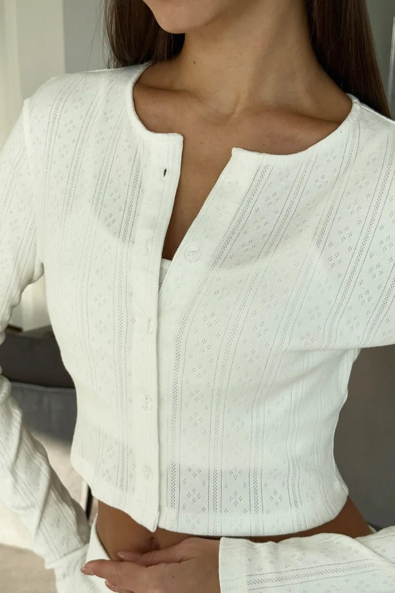Knitted Cotton Jacquard Cropped Long Sleeve Three Piece Set