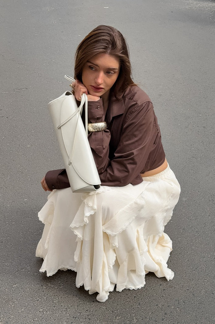 Aprikosenfarbener Rüschenrock mit elegantem Spitzenbesatz