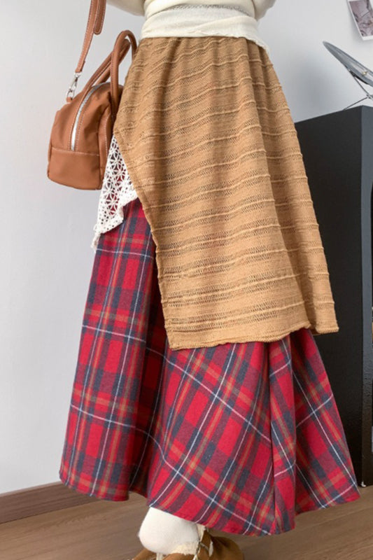 Asymmetrischer Karorock mit Spitzeneinsatz