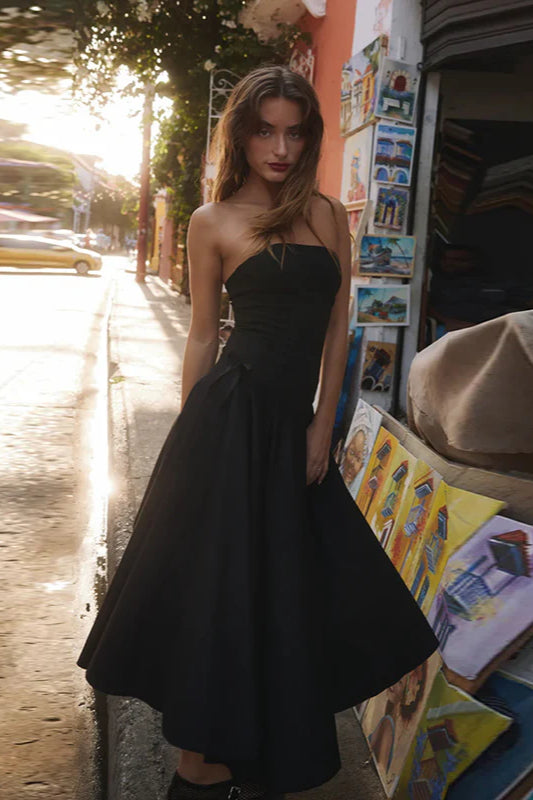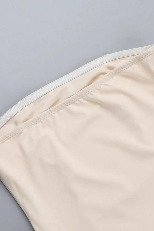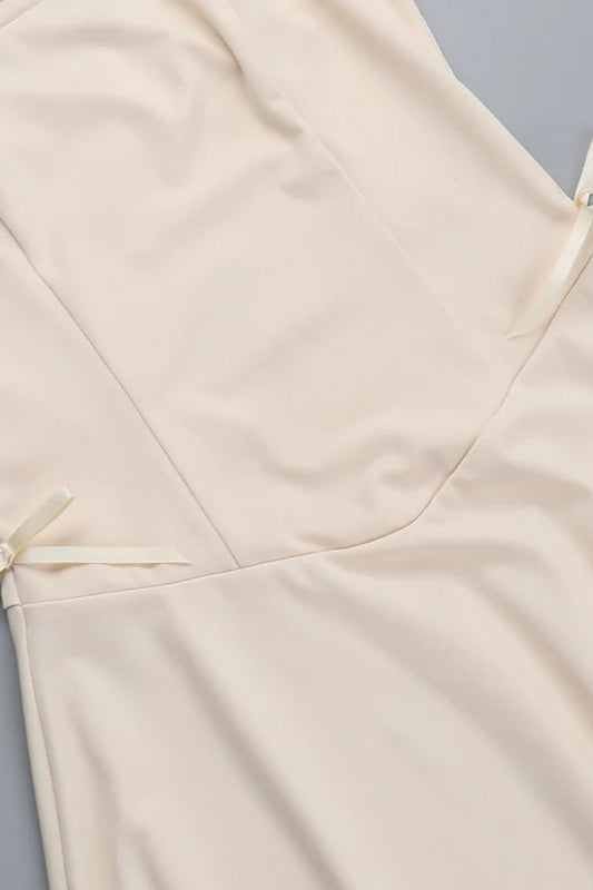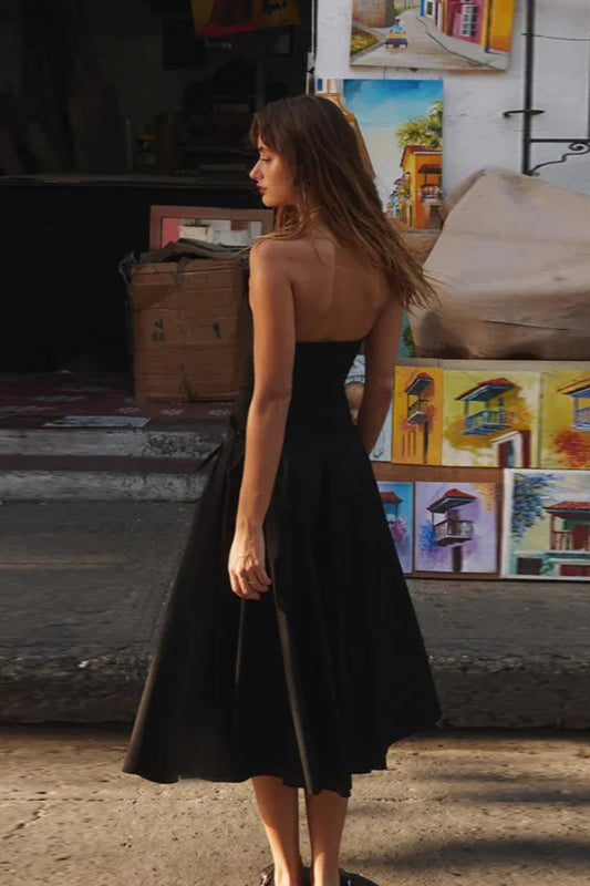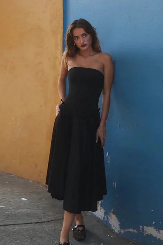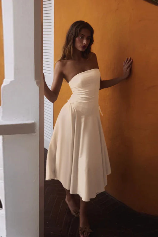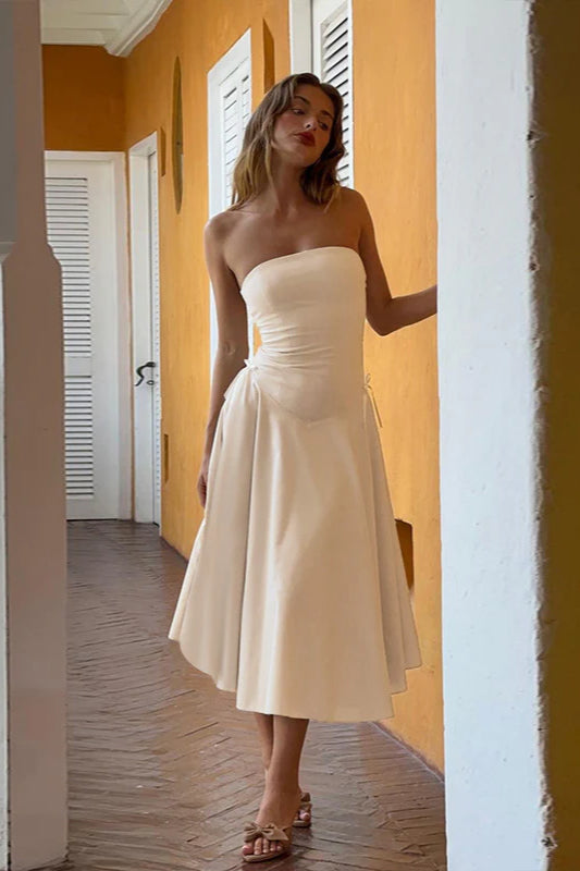 Herbstliches, schickes, trägerloses, schmal geschnittenes Partykleid mit Schleife