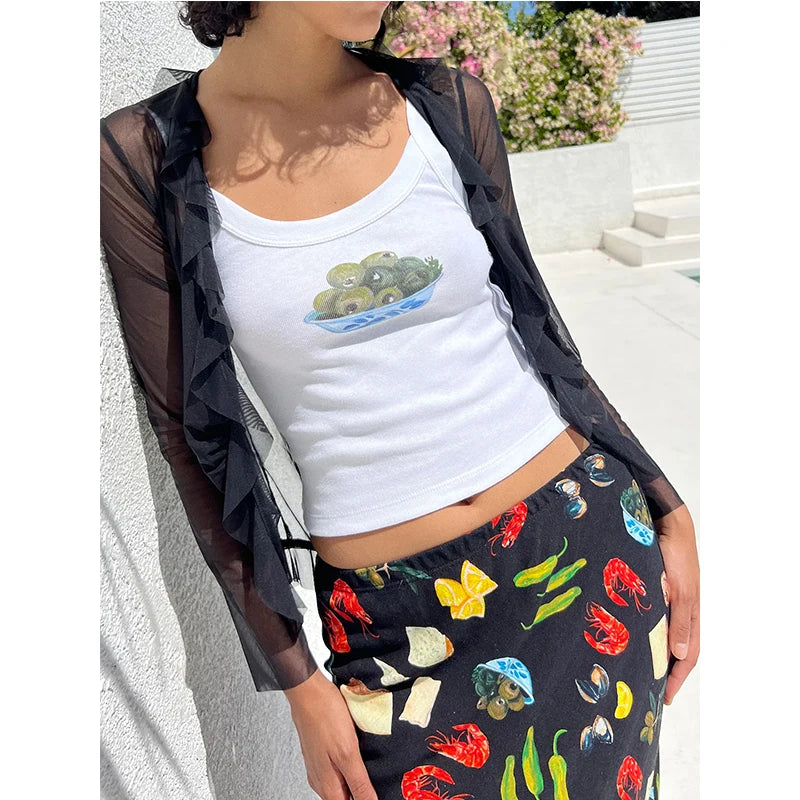 Crop Top mit Rundhalsausschnitt und Cartoon-Print