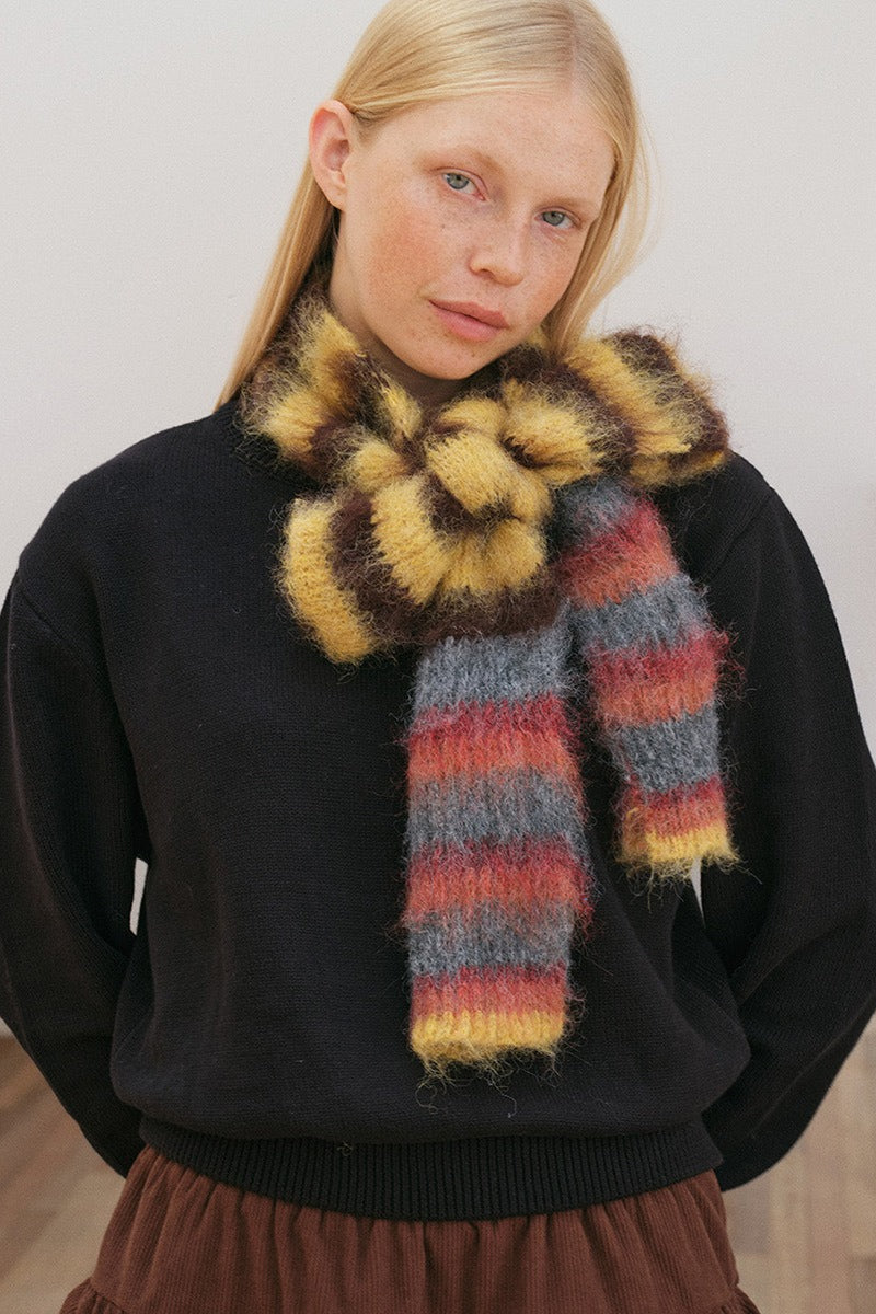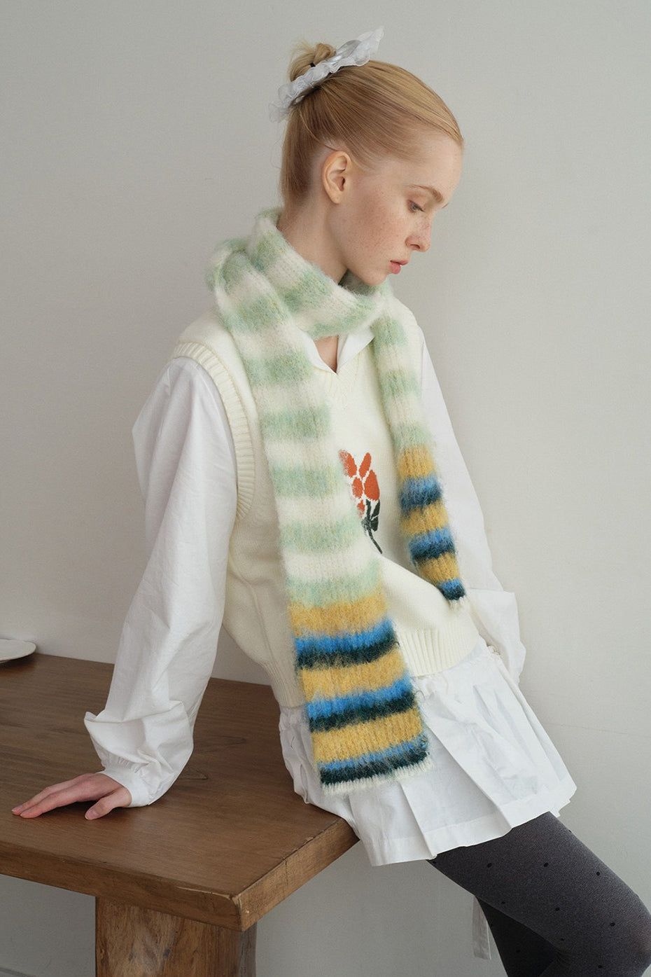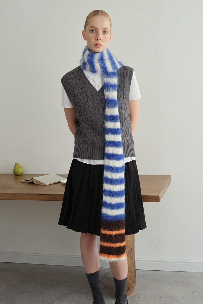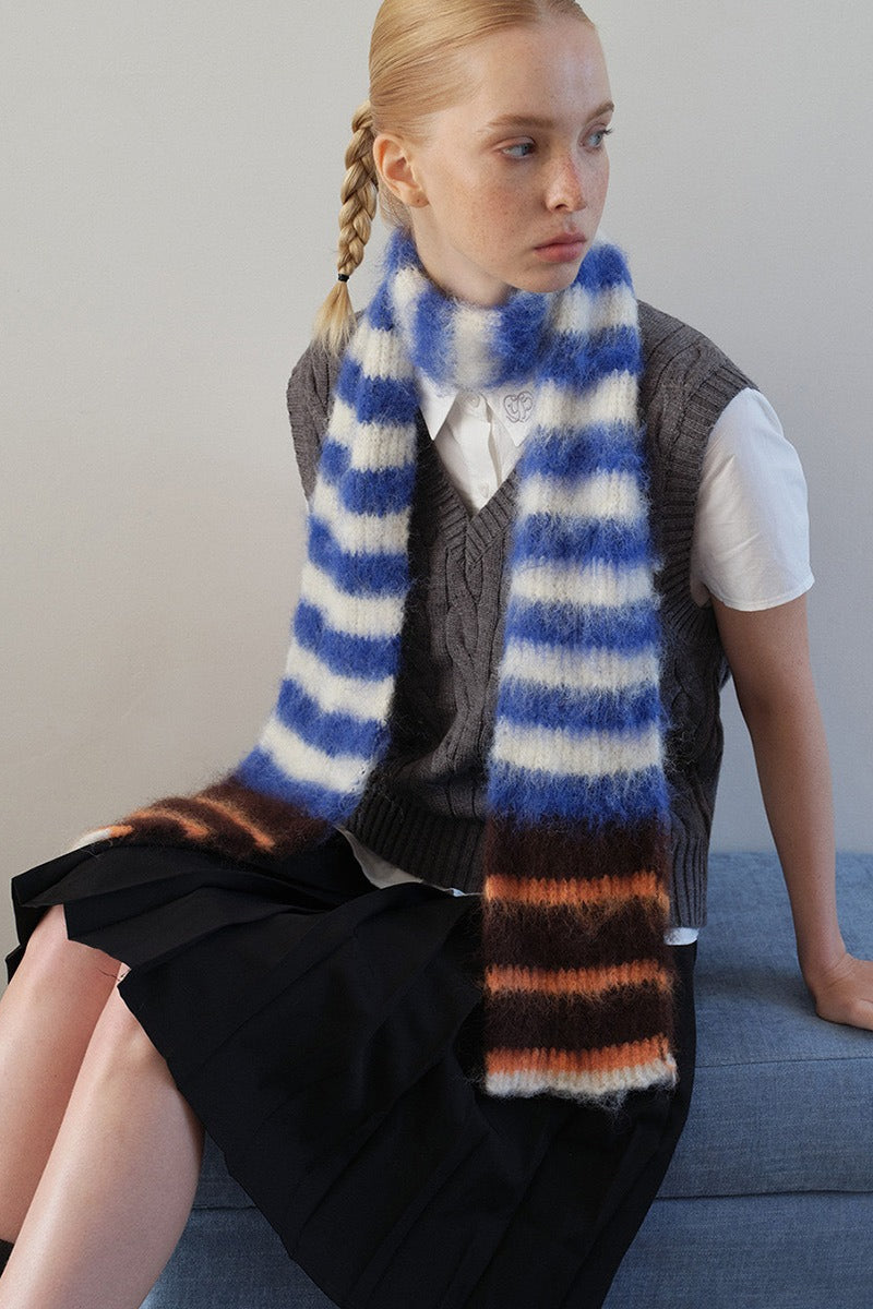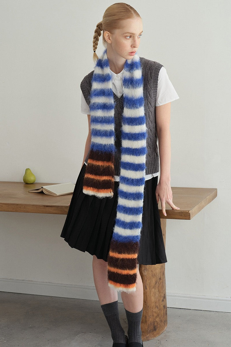 Schmaler, kontrastfarben gestreifter Strickschal aus weichem Wollmischgewebe