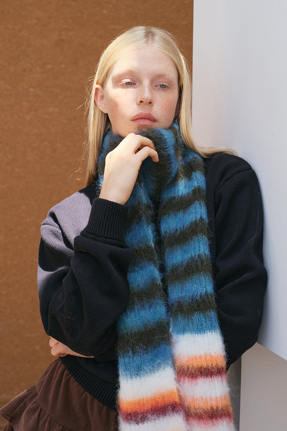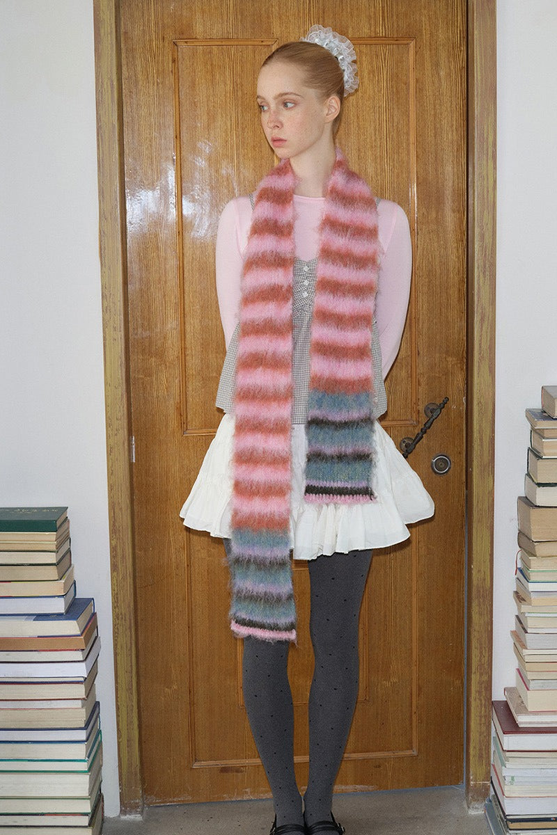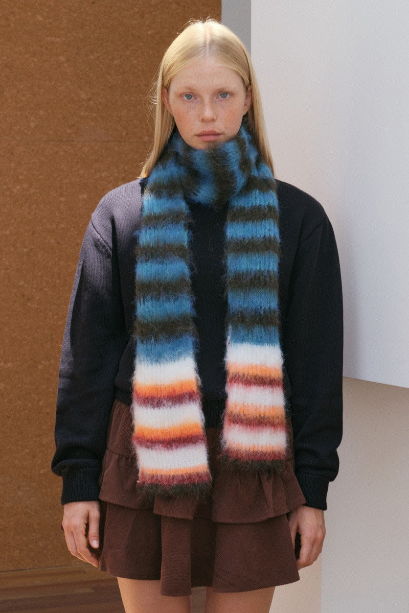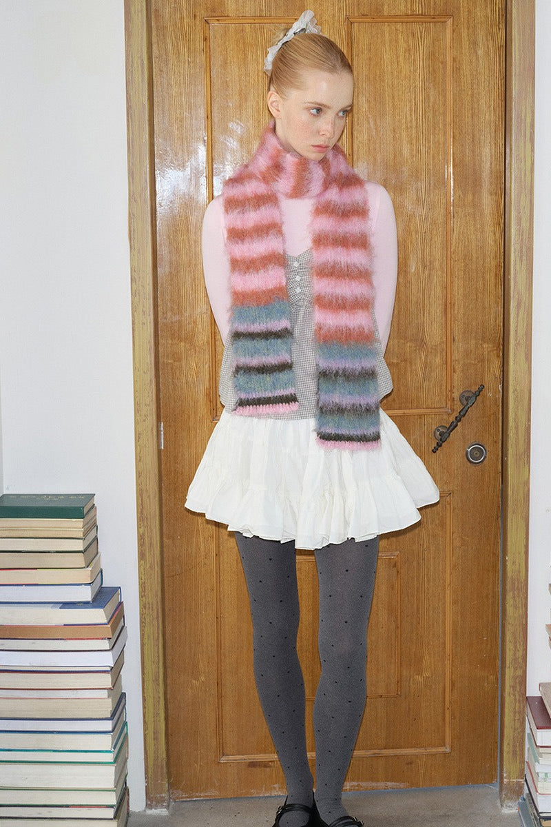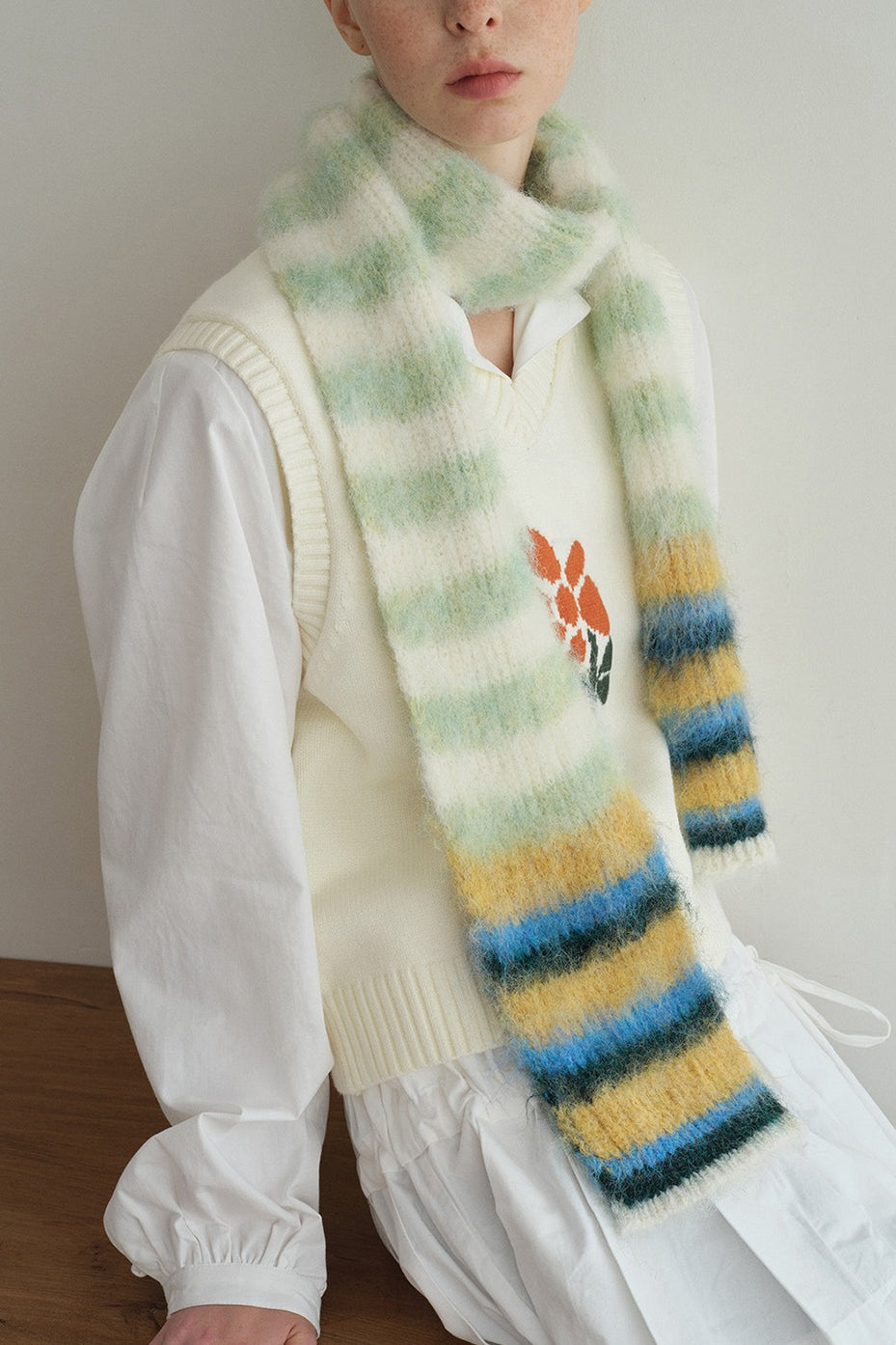 Schmaler, kontrastfarben gestreifter Strickschal aus weichem Wollmischgewebe