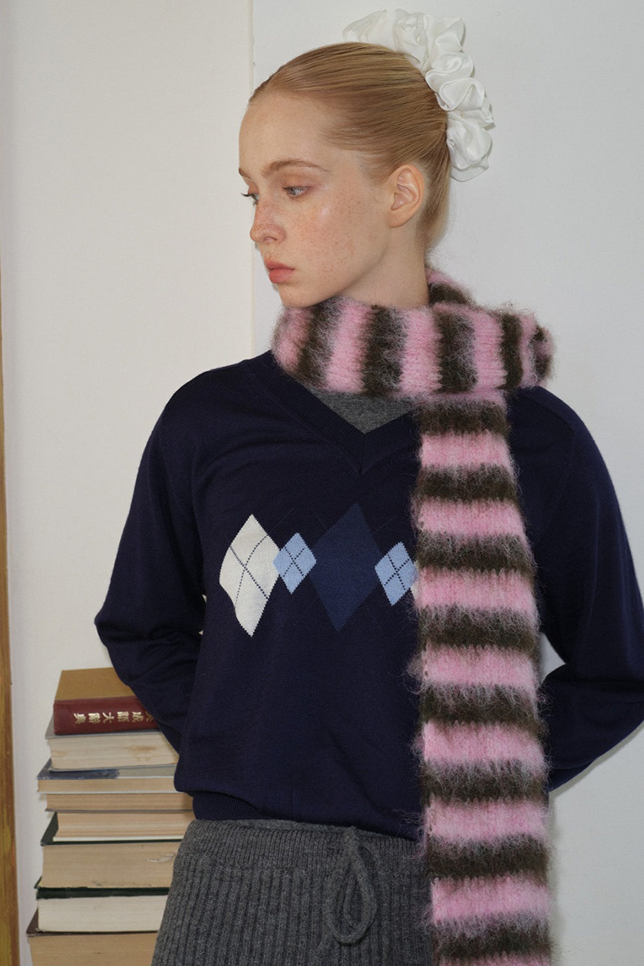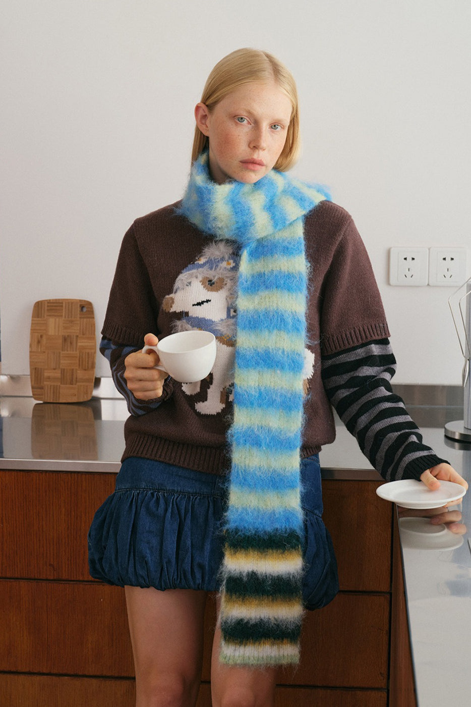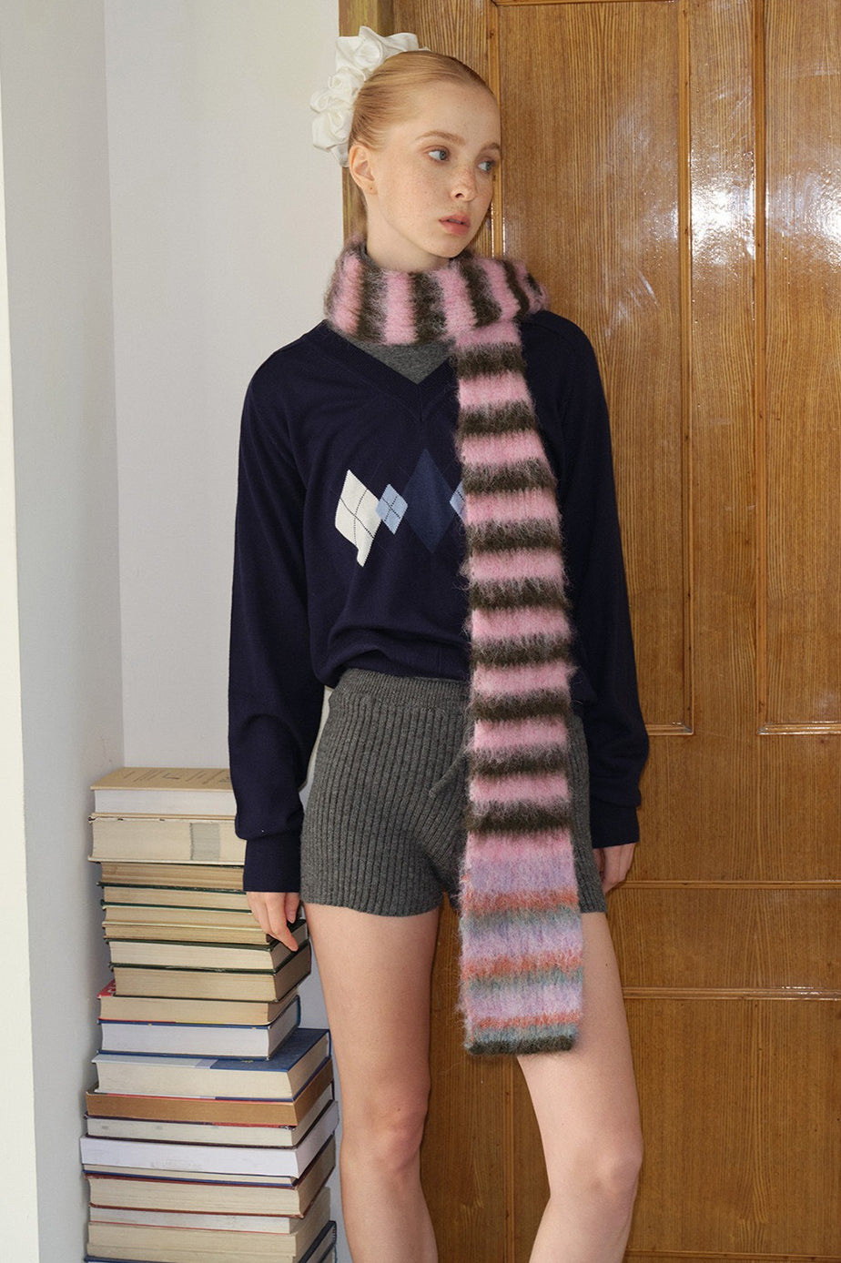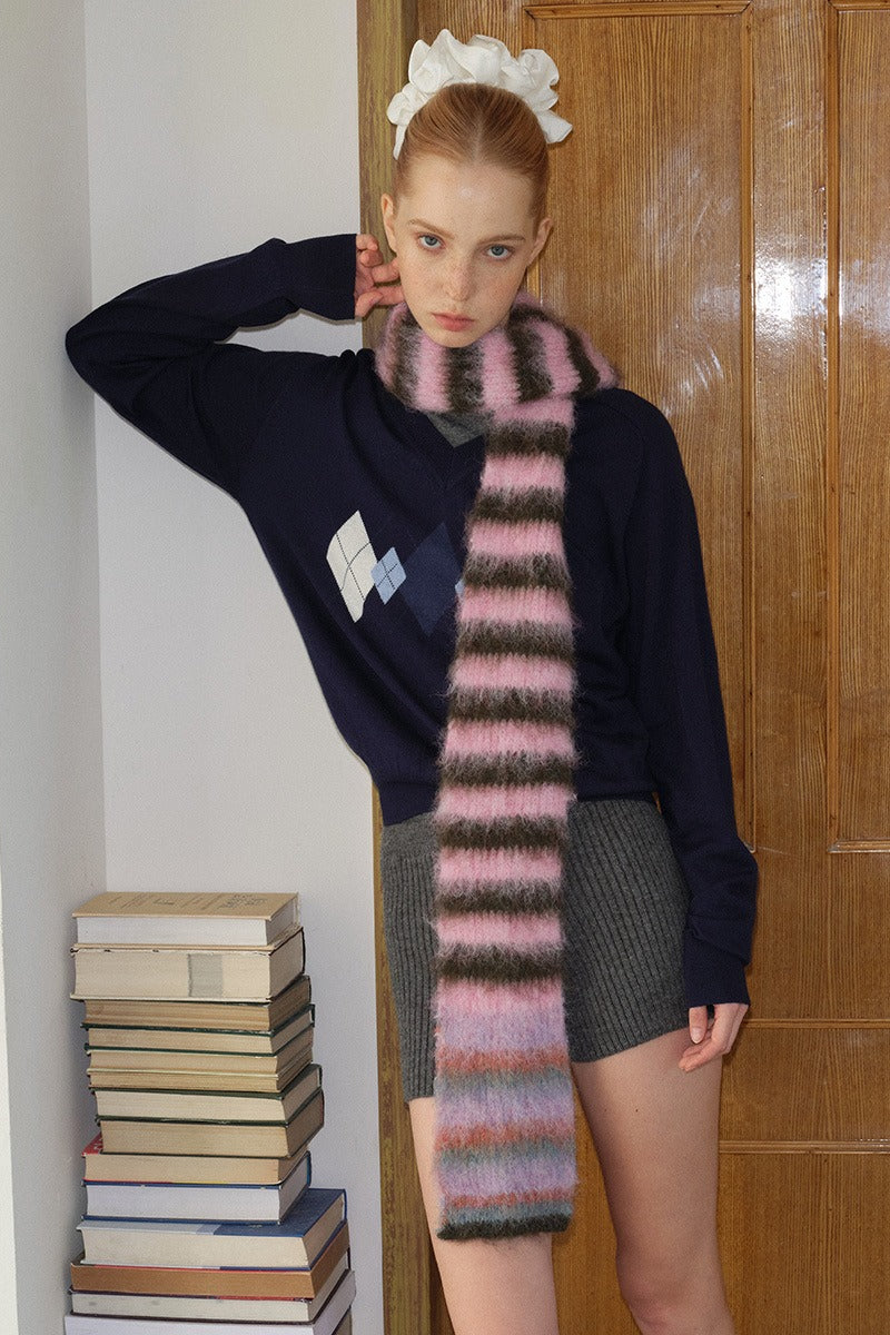 Schmaler, kontrastfarben gestreifter Strickschal aus weichem Wollmischgewebe