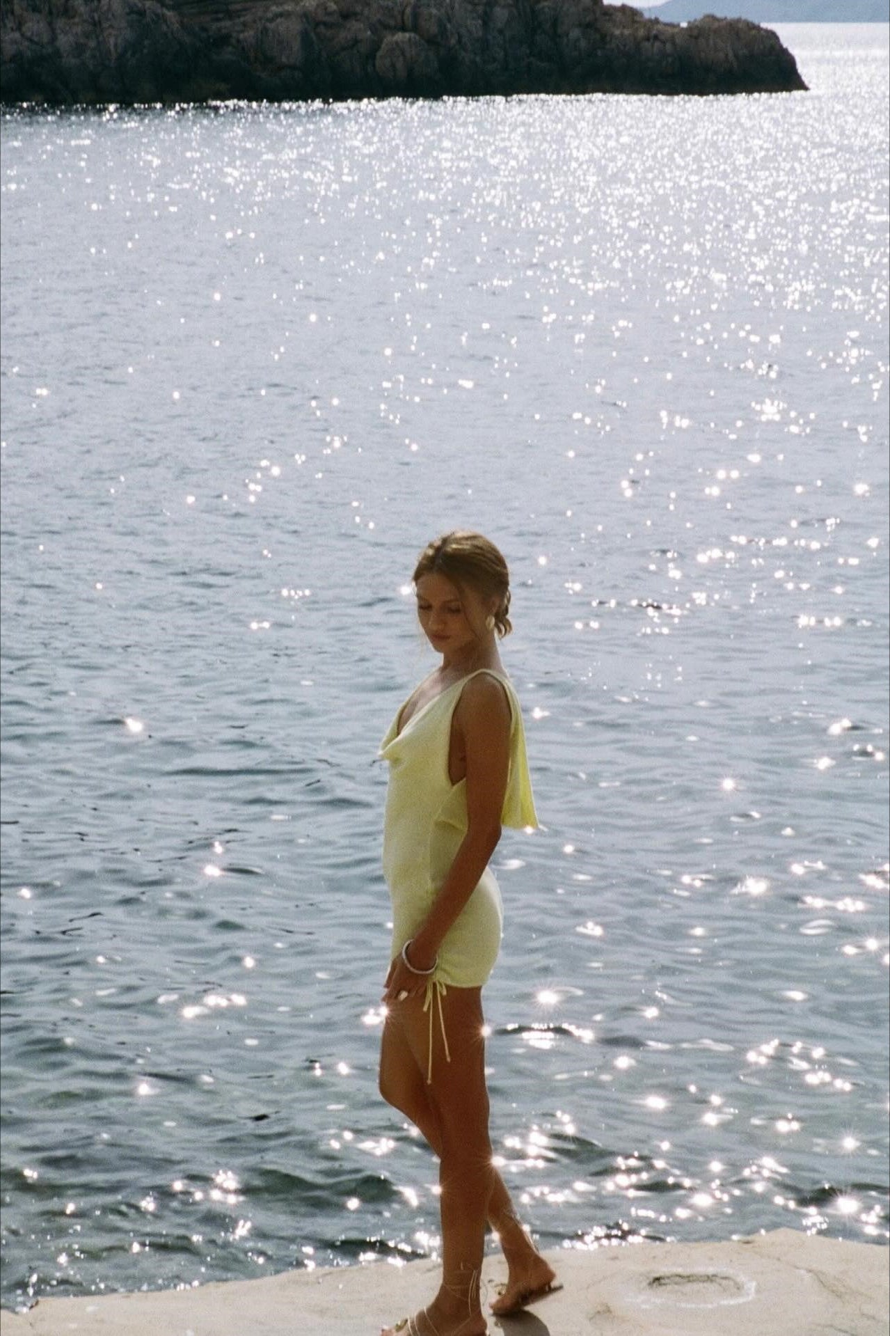 Cowl Neck Solid Knit Cover Up Vacation Mini Dress