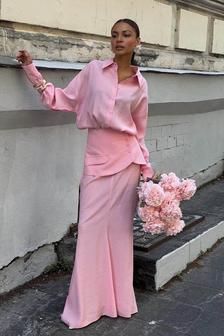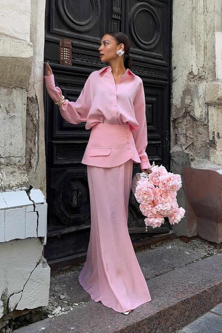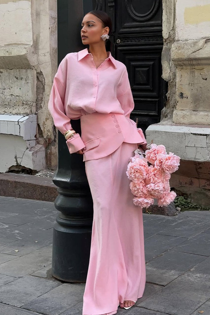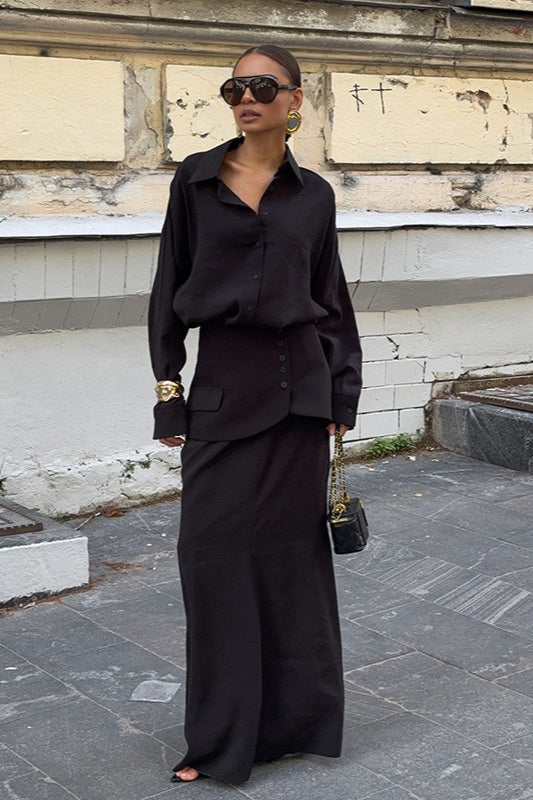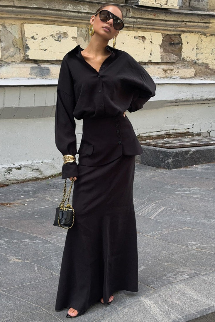 Elegantes, kreatives Streetstyle-Hemdkleid-Zweiteiler-Set mit langen Ärmeln
