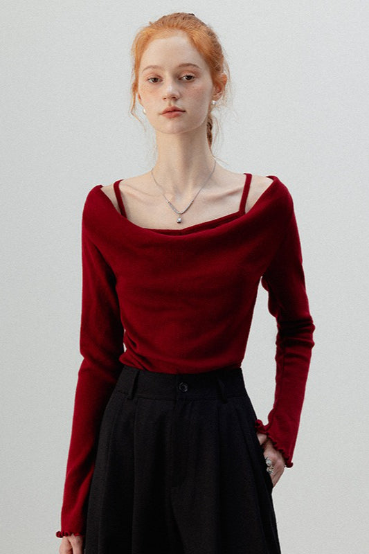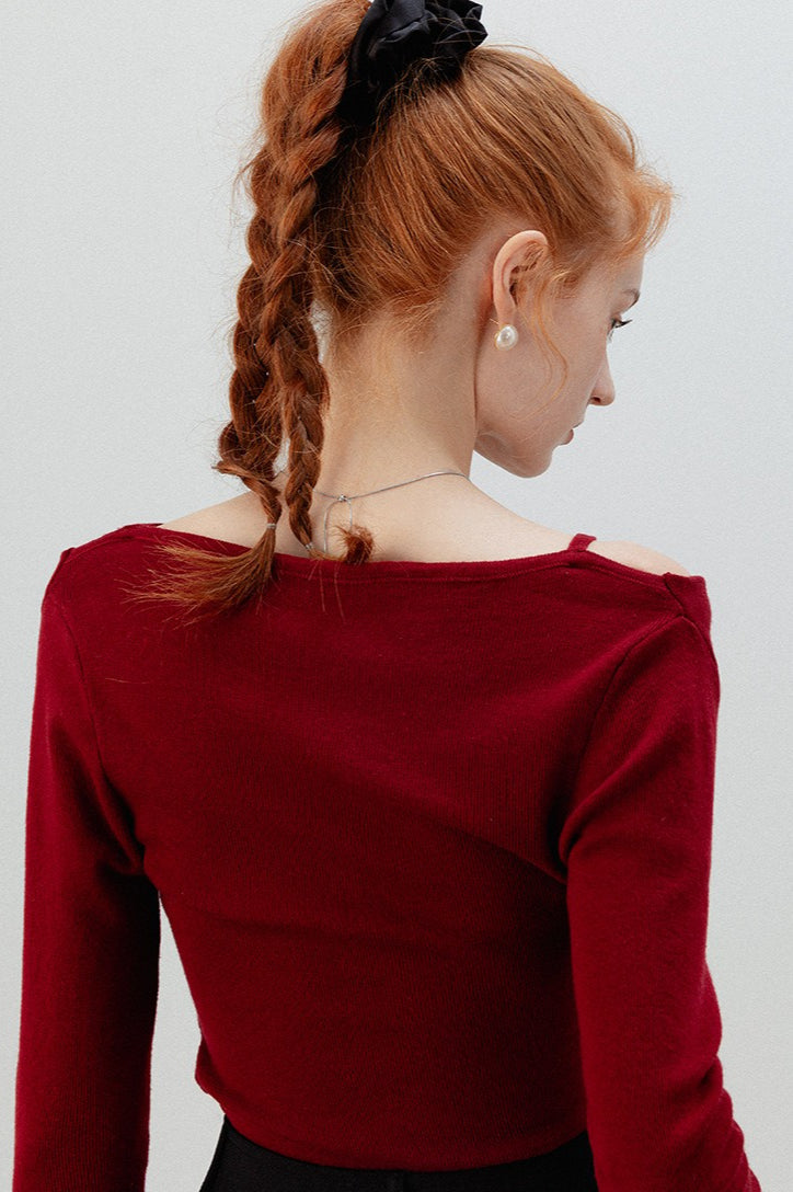 Burgunderfarbenes zweiteiliges Stricktop