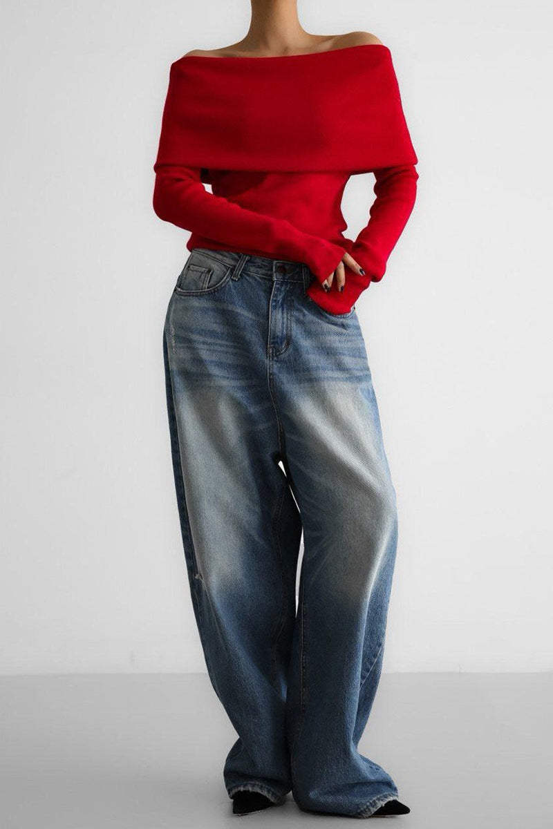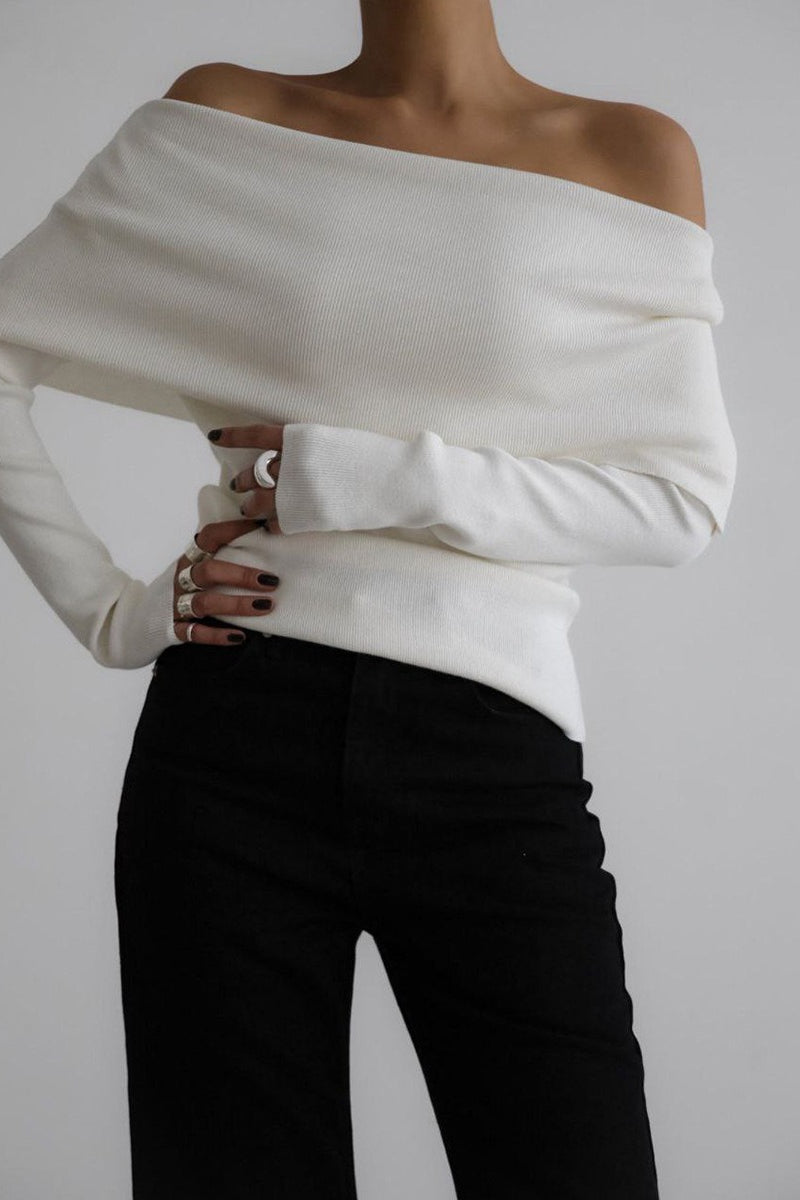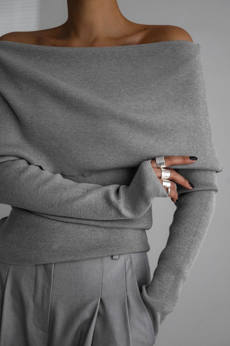 Schmal geschnittenes, langärmeliges Stricktop mit Schlitzkragen