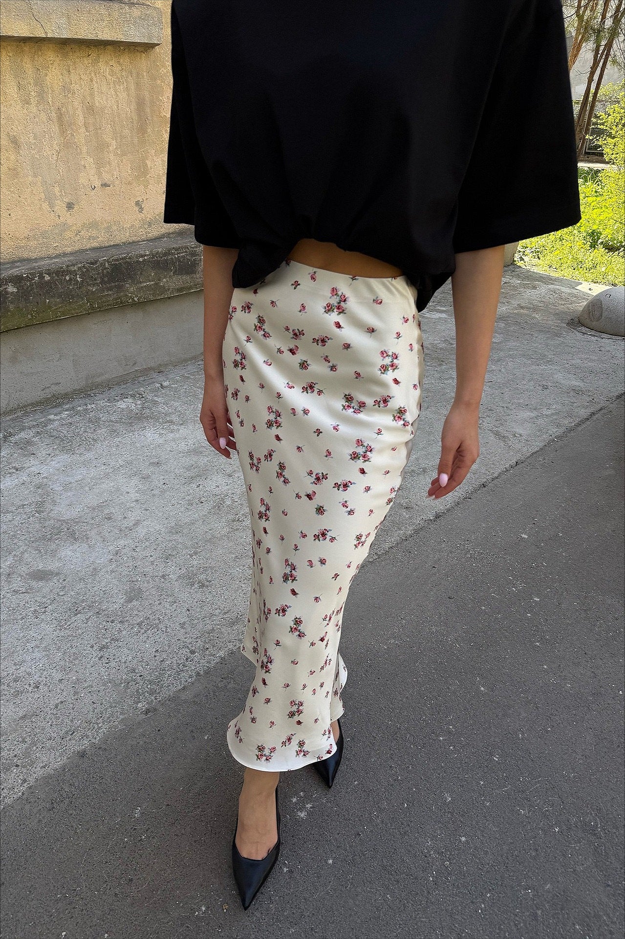 Geblümter, hochtaillierter, schmal geschnittener Bleistiftrock